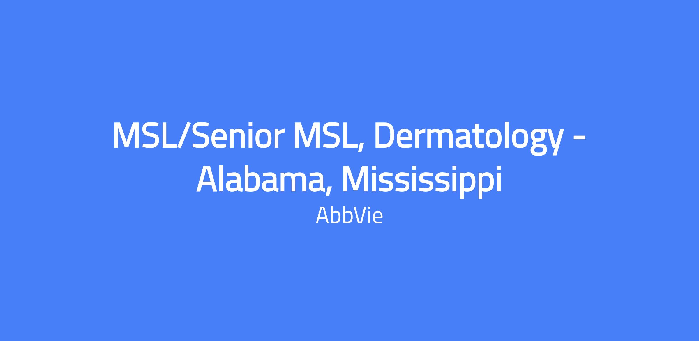 The MSL/Senior MSL is a field-based scientific expert who strategically supports the research and business objectives of a designated therapeutic area across the product life cycle within the Alabama and Mississippi territory. It serves as the primary communicator of AbbVie science to healthcare professionals in the territory and builds professional relationships to provide medical and scientific support. The role is a peer scientific expert, delivering information and education on current and future therapies while collaborating with cross-functional teams to meet clinical and business objectives. The candidate must reside in the territory or be willing to relocate within the territory (territory includes Alabama and Mississippi).