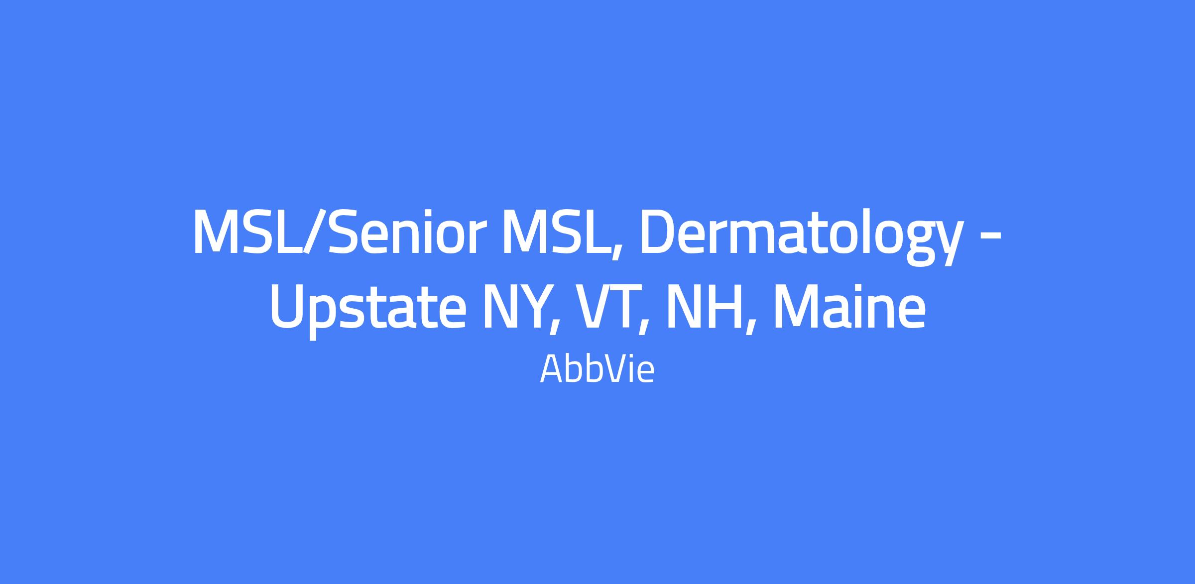 MSL/Senior MSL, Dermatology - Upstate NY, VT, NH, Maine