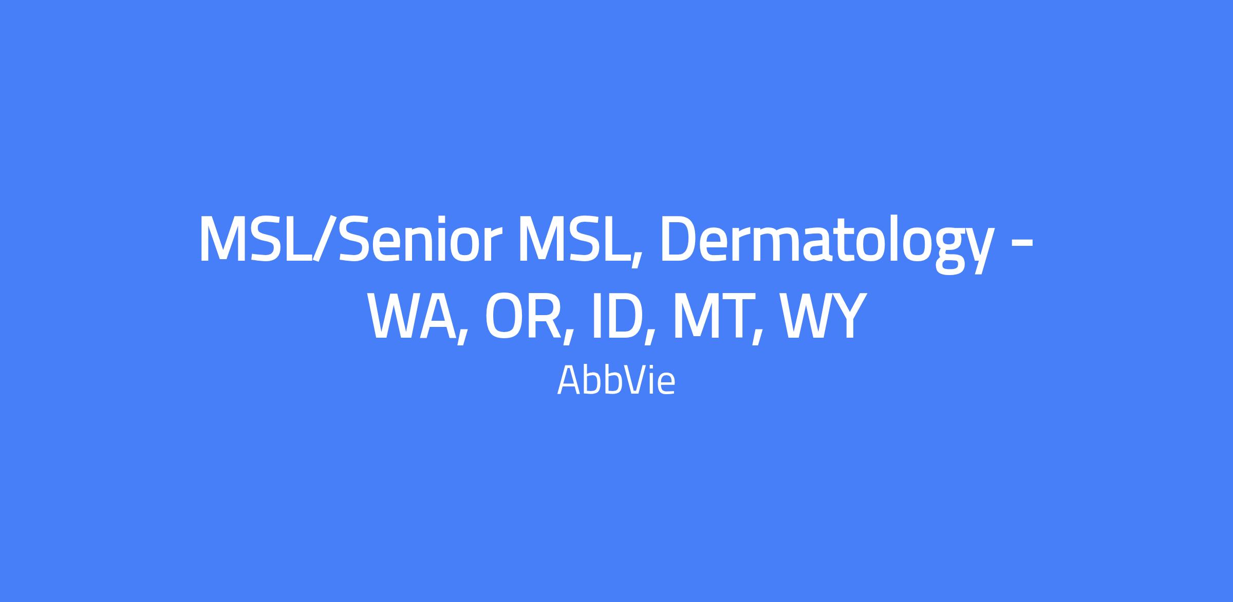 The MSL/Senior MSL in Dermatology develops and maintains professional relationships with internal and external customers to provide comprehensive medical and scientific support to AbbVie initiatives in assigned therapeutic areas. The MSL/Senior MSL is viewed as a peer scientific expert in a designated therapeutic area/product. Combined with strategic vision and clinical expertise, the MSL/Senior MSL serves as a conduit of information, education, and research activities for physicians and ancillary healthcare professionals regarding current and future therapies in development or commercialized by AbbVie. The MSL/Senior MSL works closely with other AbbVie personnel to ensure information, education, and research needs of healthcare professionals are met and to ensure scientific and technical training needs of commercial organizations are identified and met.