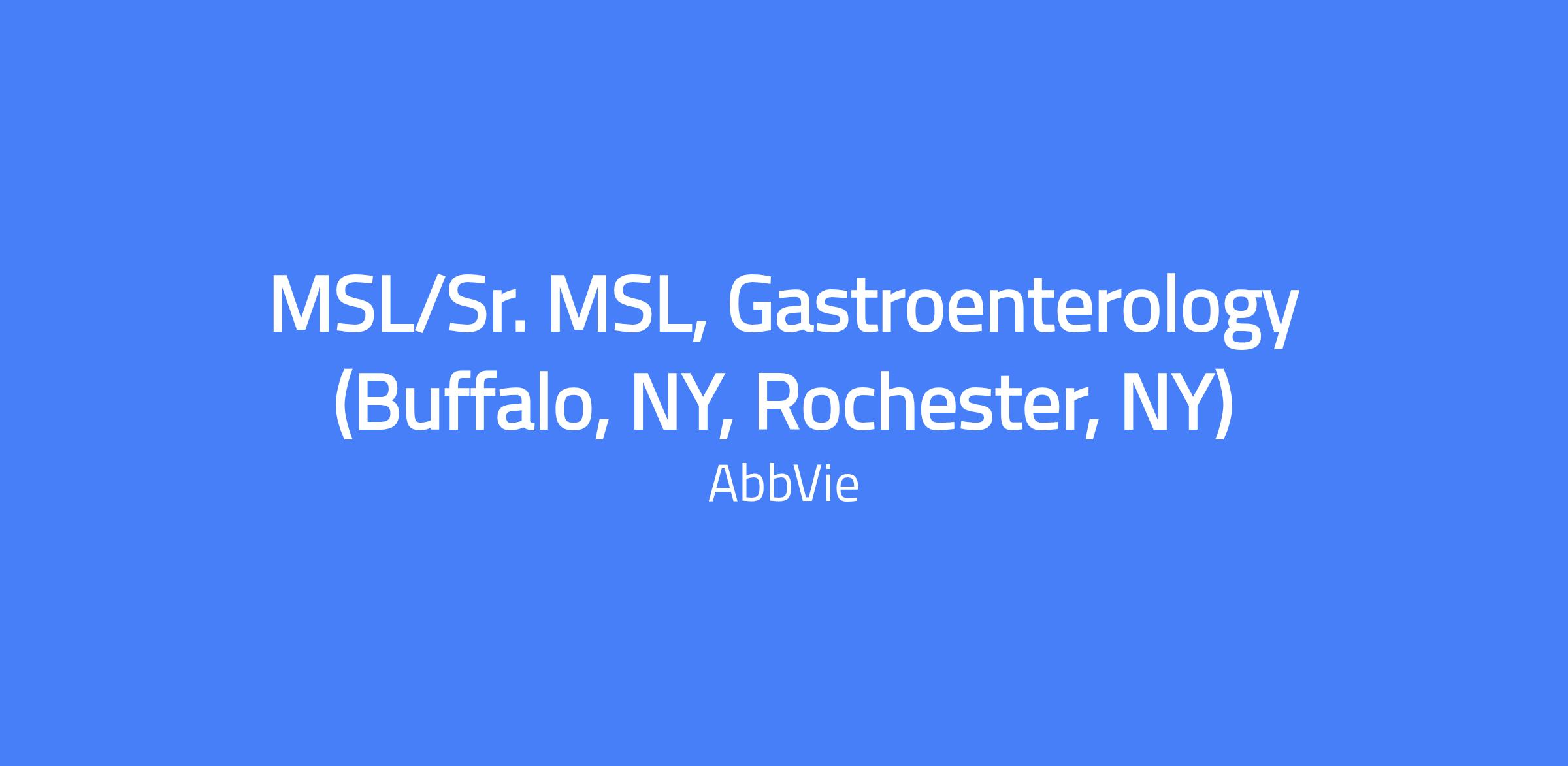 Medical Science Liaison (MSL), Gastroenterology, field-based scientific expert supporting scientific and business objectives in a designated geography. Primary communicator of medical and scientific information to healthcare professionals within the territory, building and maintaining professional relationships to provide medical and scientific support across the product lifecycle. Territory: Buffalo, NY; Rochester, NY, with broader NY/PA coverage as required.
