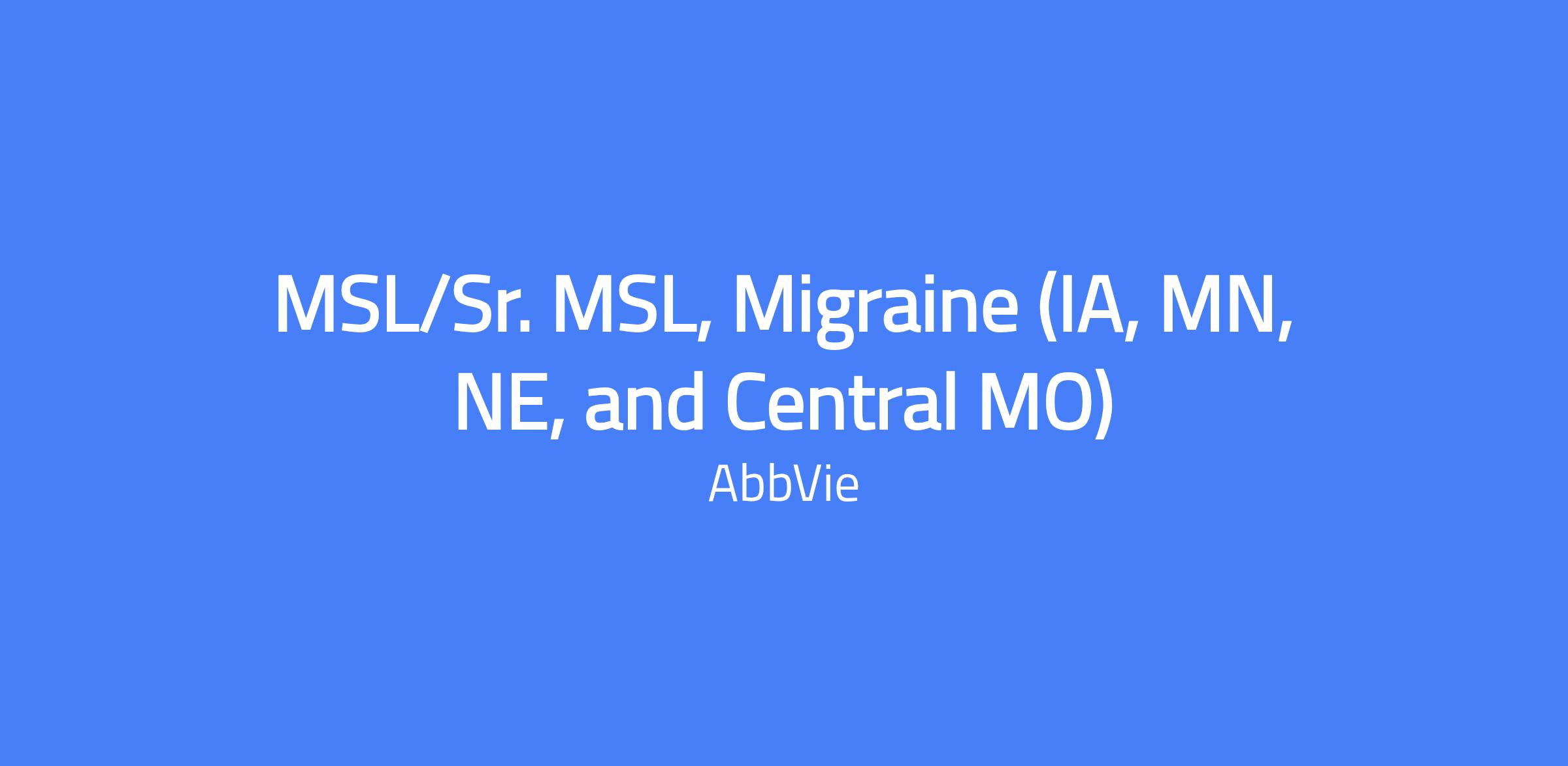 MSL/Sr. MSL, Migraine (IA, MN, NE, and Central MO)