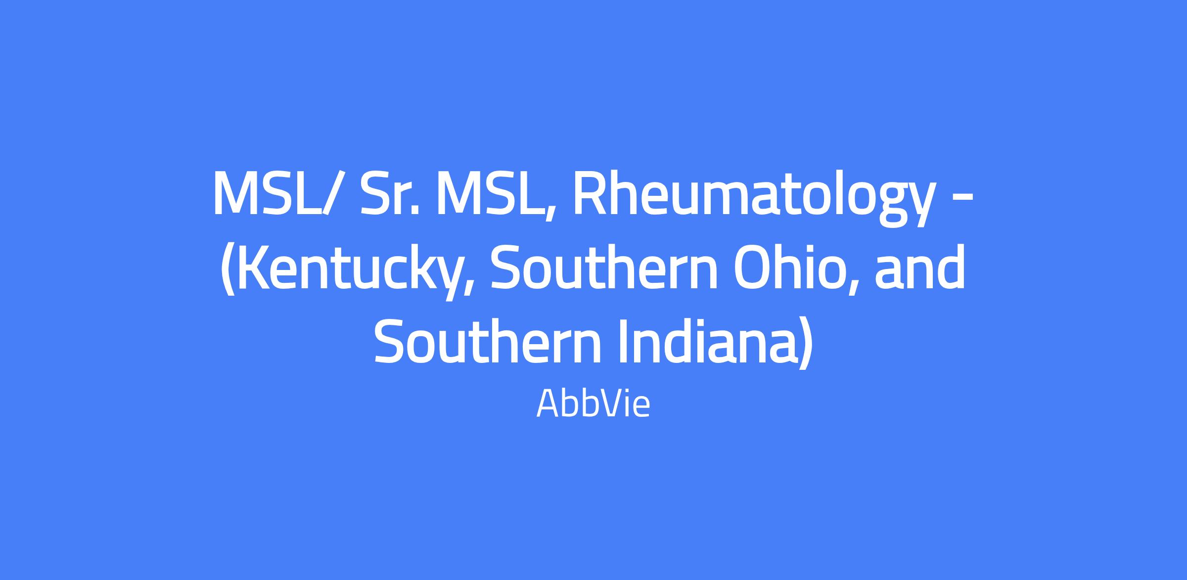 MSL/ Sr. MSL, Rheumatology - (Kentucky, Southern Ohio, and Southern Indiana)