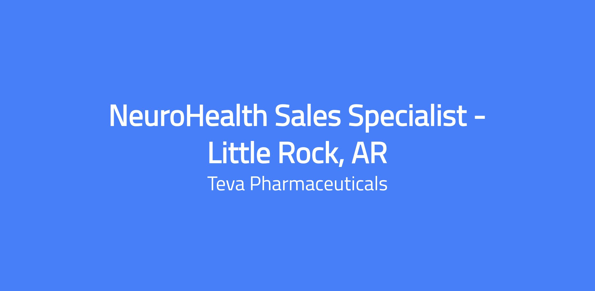 The NeuroHealth Sales Specialist role in Little Rock, Arkansas is part of a psychiatry-focused sales team responsible for driving the performance of a long-acting injectable therapy for schizophrenia and promoting Tevaβs existing Psychiatry products in the Little Rock area. The role delivers results in a compliant and ethical manner, analyzes trends to inform customer interactions, and plans business activities with aligned objectives. The Sales Specialist builds mutually beneficial networks with internal and external stakeholders and uses effective communication and presentation skills to move customers toward solutions.