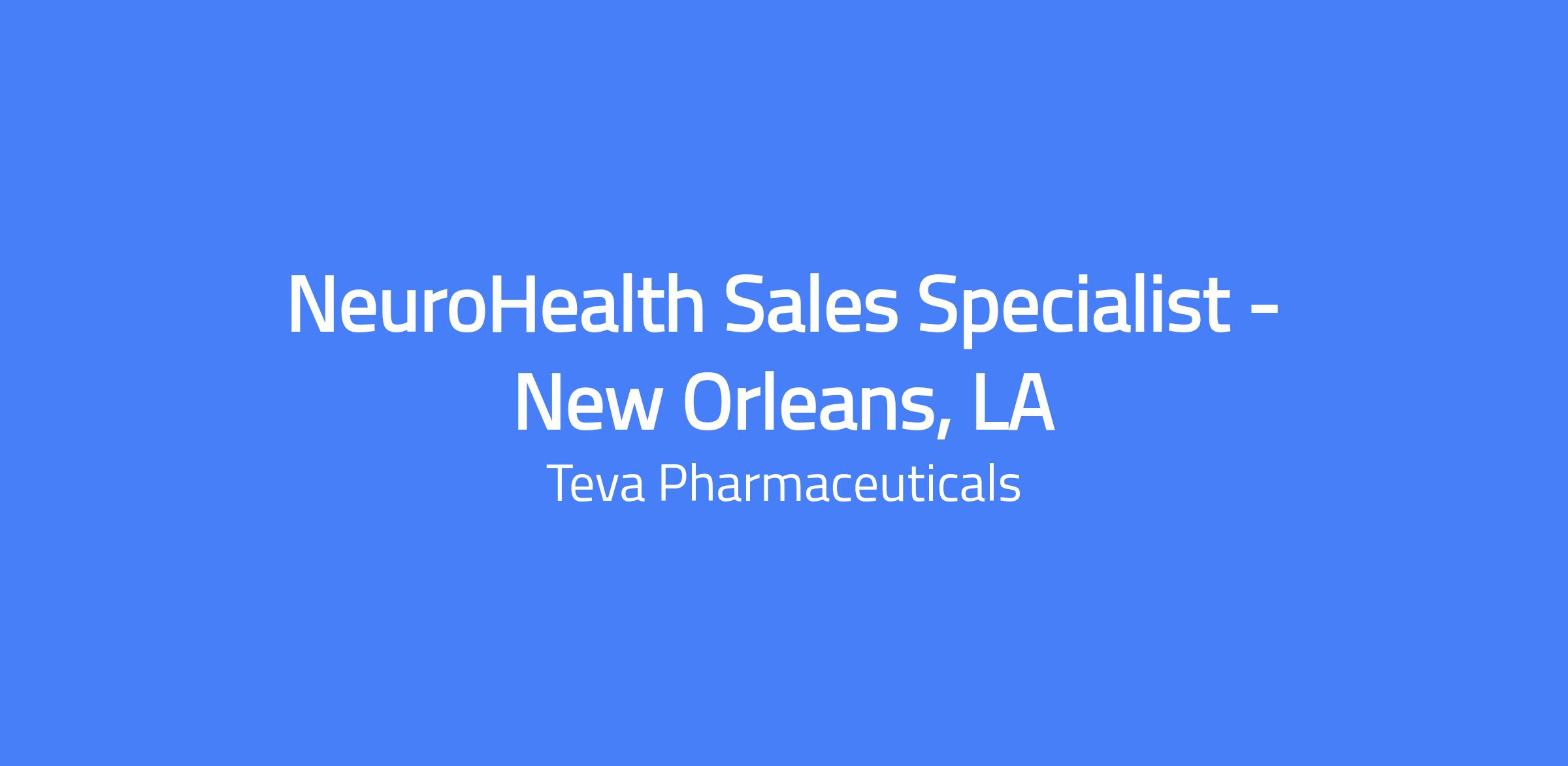 NeuroHealth Sales Specialist in New Orleans will be part of a psychiatry-focused sales team responsible for a long-acting injectable therapy for schizophrenia and promoting existing Psychiatry products in the local area. The role delivers results by collaborating across teams in a compliant and ethical manner, aligning resources with organizational objectives, and building strong networks with internal and external stakeholders. The Sales Specialist analyzes trends, applies knowledge in customer interactions, and plans business activities to achieve territory goals, while upholding Tevaโs culture and values.
