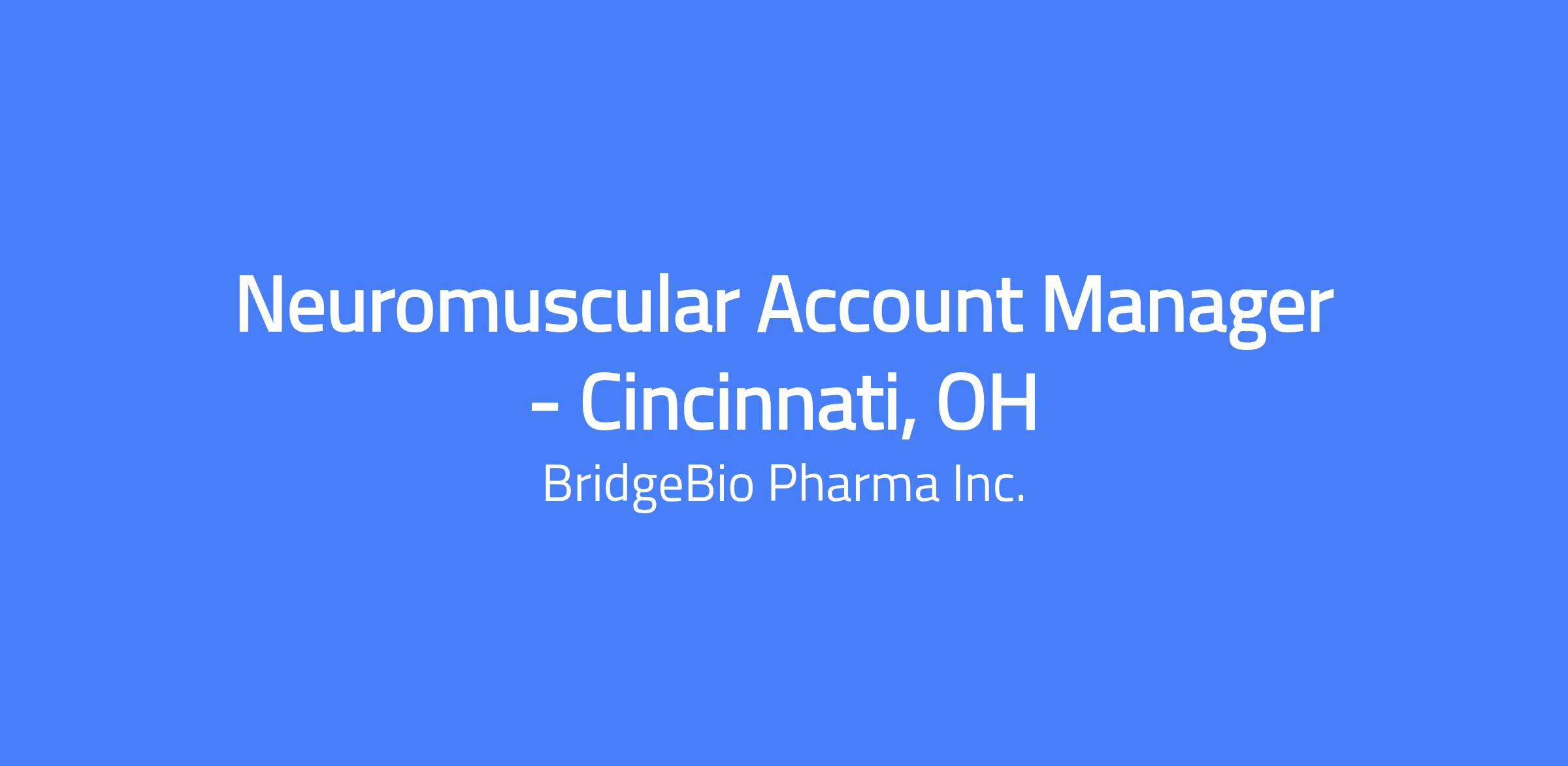 The Neuromuscular Account Manager is a high-impact field-based position that is critically important to BridgeBio’s success. They will be patient champions with exceptional business and clinical acumen to execute product launches with sustained excellence. In doing such, they will bring passion, urgency, and a get-it-done attitude to treating unmet needs in patients.