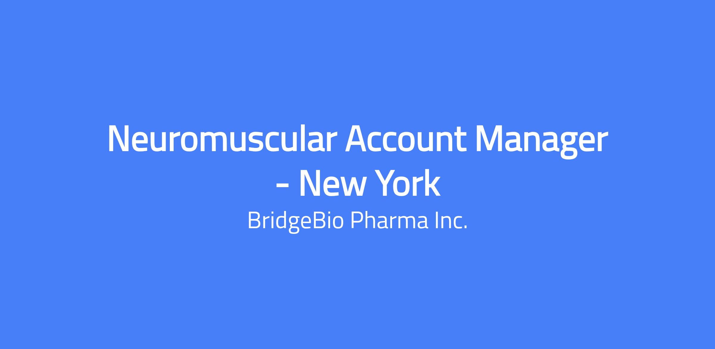 The Neuromuscular Account Manager is a high-impact field-based position that is critically important to BridgeBio’s success. They will be patient champions with exceptional business and clinical acumen to execute product launches with sustained excellence. In doing such, they will bring passion, urgency, and a get-it-done attitude to treating unmet needs in patients.