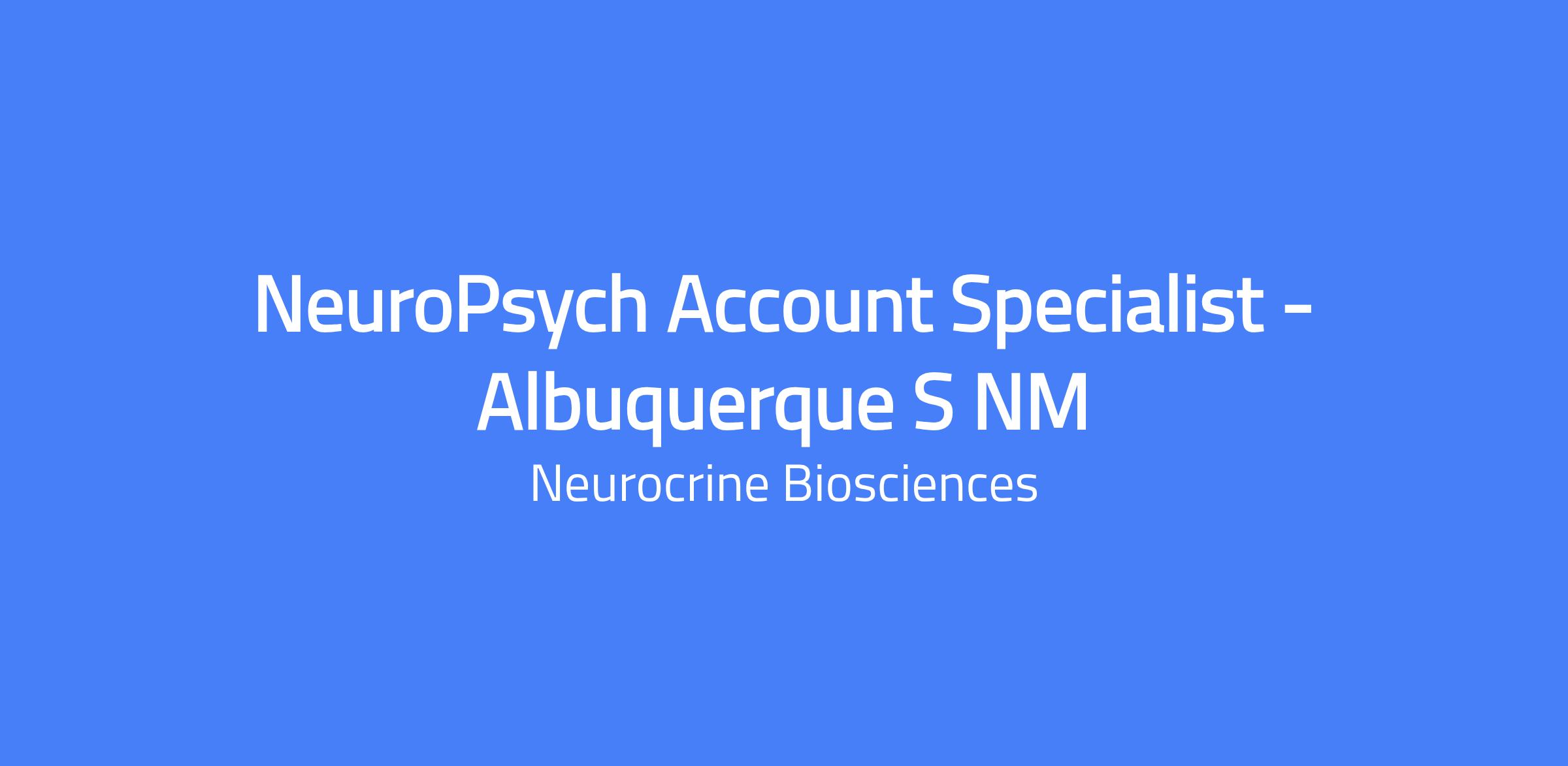 NeuroPsych Account Specialist for Albuquerque, NM is responsible for the promotional growth of Neurocrine products within a specific geographic territory, developing long-term relationships with physicians and other customers, and educating external stakeholders about the benefits of the companyβs products. The role represents Neurocrine brands and their approved indications, and requires field presence and collaboration with cross-functional teams.
