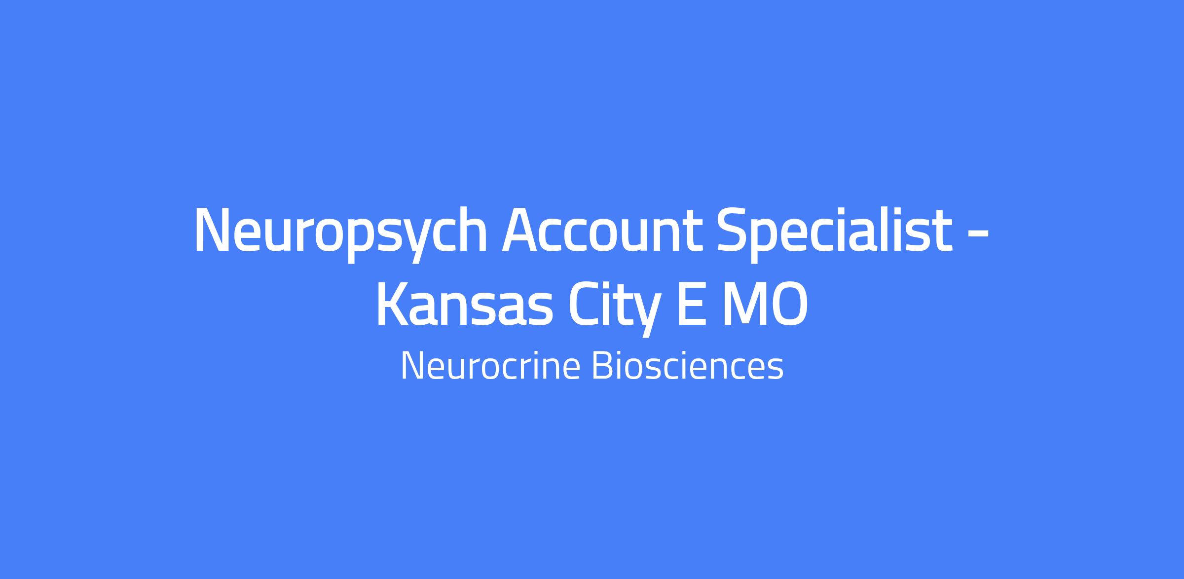 Role: Neuropsych Account Specialist in Kansas City, MO/Eastern Missouri. Responsible for a specific geographic territory and the successful promotion and growth of Neurocrine products. Builds and maintains long-term relationships with physicians and other customers for targeted accounts, representing Neurocrine brand(s) and their approved indications. Also educates external customers such as physicians, nurses, medical assistants, case managers, and others about the benefits of the products.