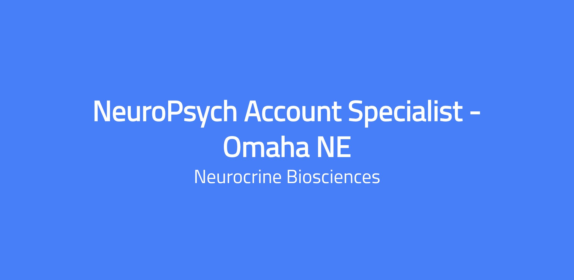 Neuropsych Account Specialist based in Omaha, NE. Responsible for a specific geographic territory and the successful promotion and growth of Neurocrine products. Manages and develops long-term relationships with physicians and other customers for targeted accounts in their assigned territory and represent Neurocrine brand(s) and their approved indications. Educates external customers such as physicians, nurses, medical assistants, case managers, etc. and helps them learn about the benefits of our product(s).