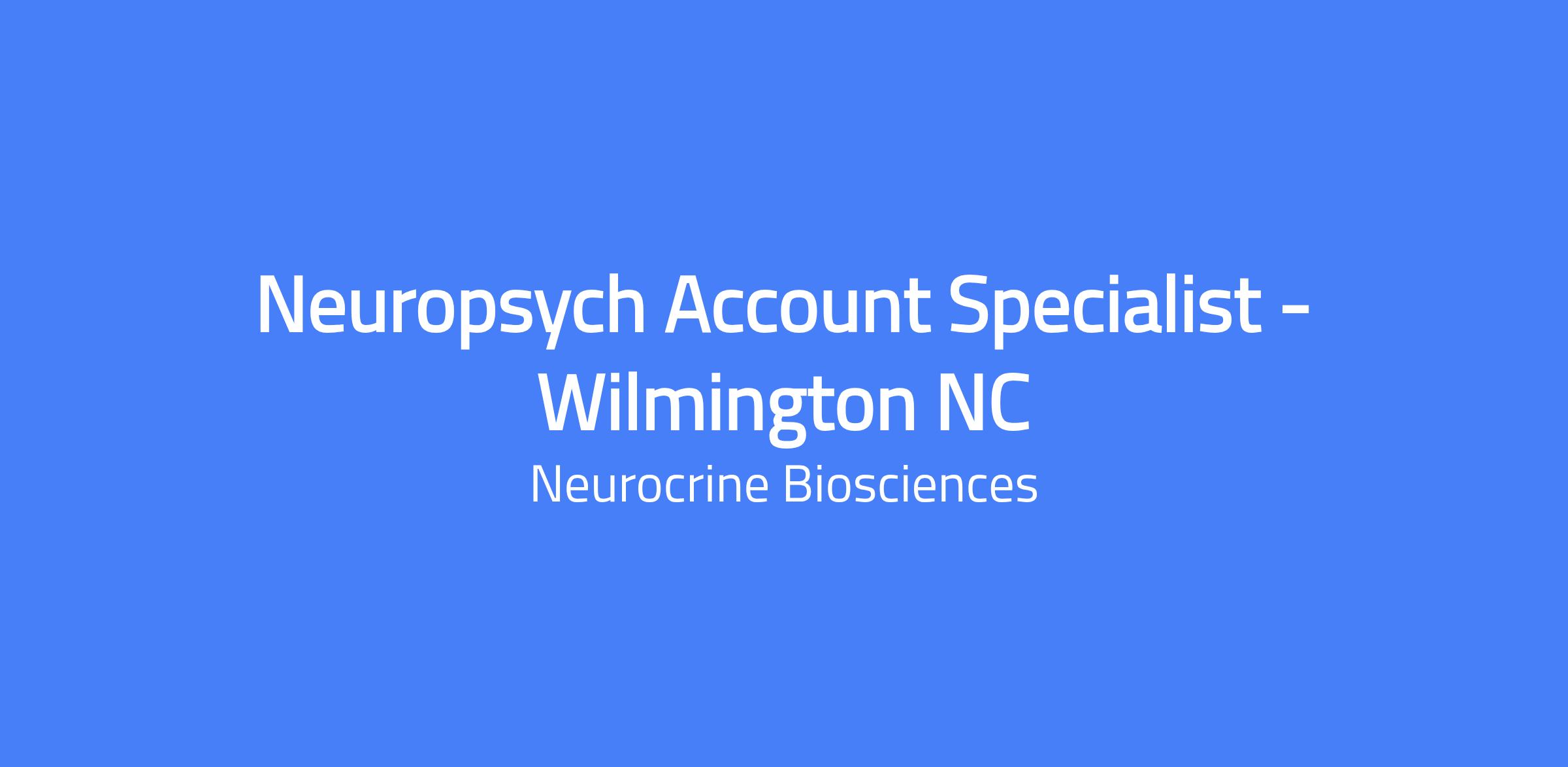 Neuropsych Account Specialist responsible for a specific geographic territory and the successful promotion and growth of Neurocrine products. Manages and develops long-term relationships with physicians and other customers for targeted accounts in their assigned territory and represents Neurocrine brand(s) and their approved indications. This role also plays an important part in educating external customers such as physicians, nurses, medical assistants, case managers, etc., and helping them learn about the benefits of our products. Location: Wilmington, NC. Travel may include occasional evening/weekend events as part of work expectations.