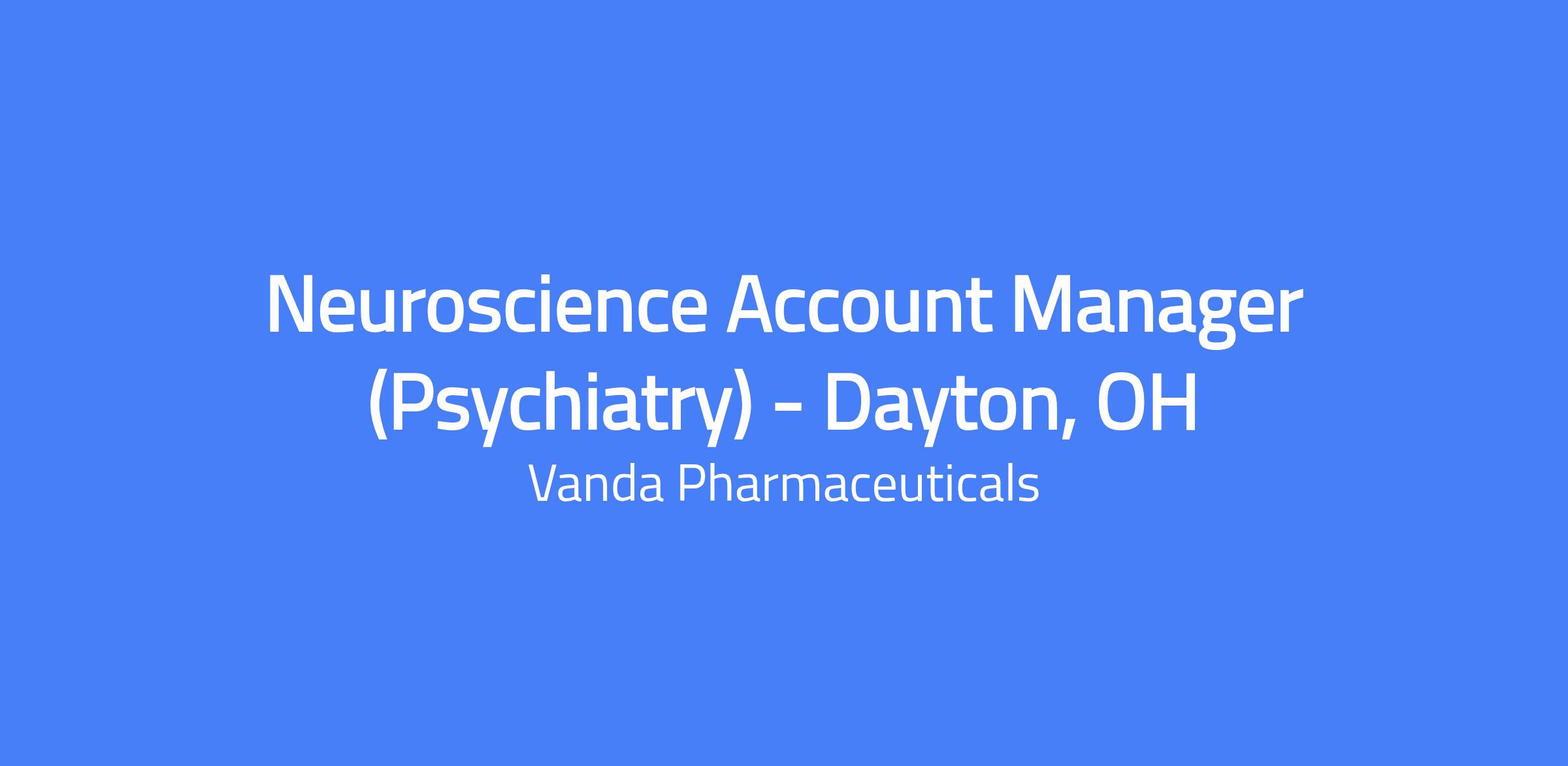 The Neuroscience Account Manager (Psychiatry) in Dayton, OH will exceed established goals by delivering real value to customers through differentiated products and services. This role reports to the Neuroscience District Sales Manager and works within a dynamic sales organization to make a difference in patients’ lives.