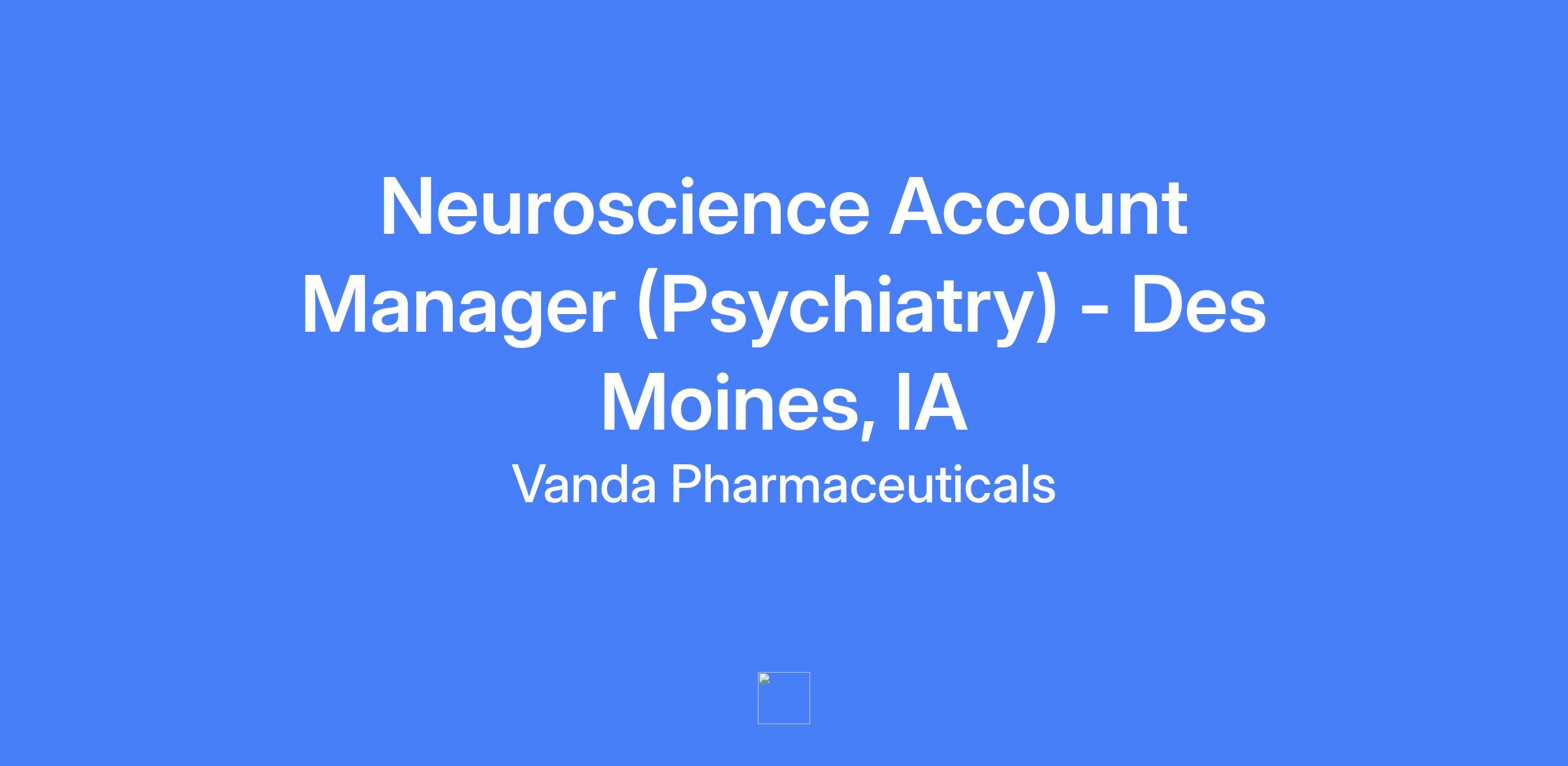 Neuroscience Account Manager (Psychiatry) in Des Moines, IA. Responsible for exceeding sales goals by delivering value to customers through differentiated products and services within the assigned territory.