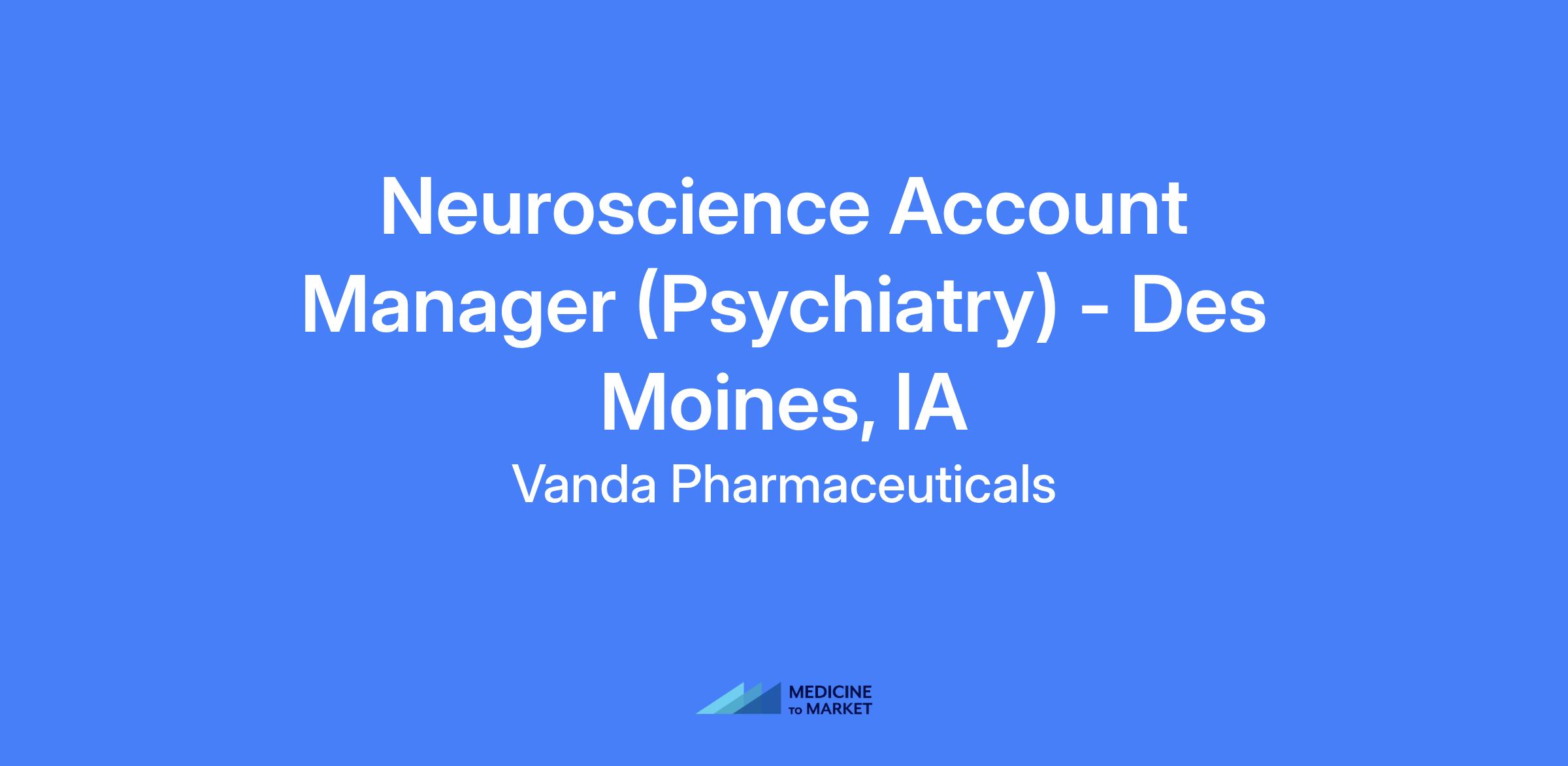 Neuroscience Account Manager (Psychiatry) in Des Moines, IA. Responsible for exceeding sales goals by delivering value to customers through differentiated products and services within the assigned territory.