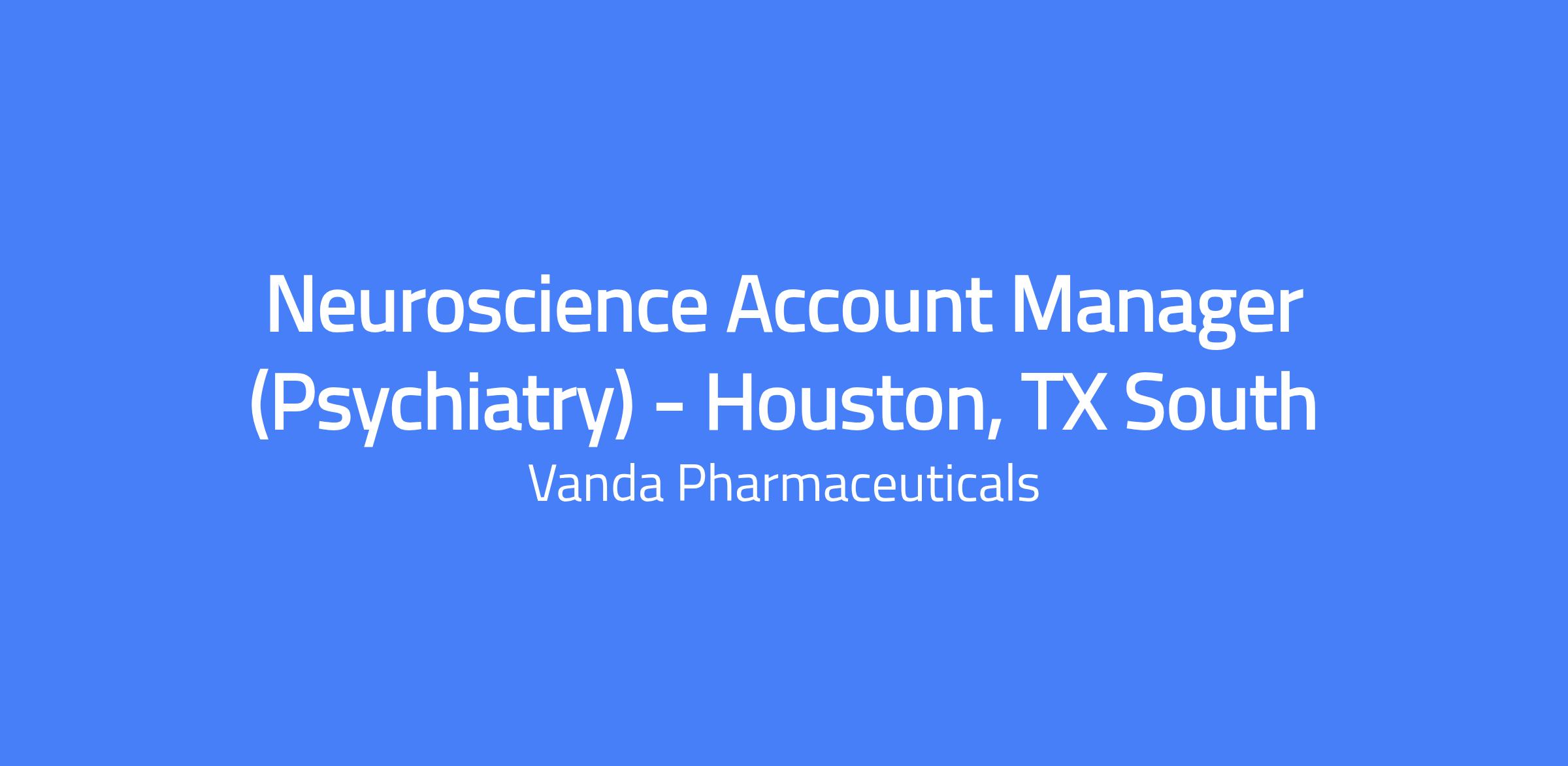 Neuroscience Account Manager (Psychiatry) in Houston, TX South. Primary responsibility is to exceed established goals by delivering real value to customers through differentiated products and services, reporting to the Neuroscience District Sales Manager.