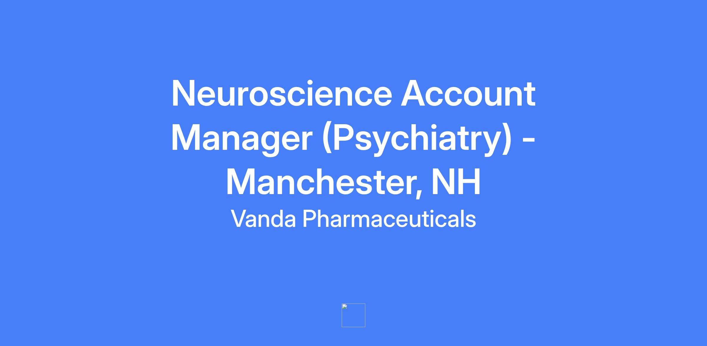 Neuroscience Account Manager (Psychiatry) in Manchester, NH. Vanda Pharmaceuticals is seeking a professional to join a dynamic sales organization and exceed established goals by delivering real value to customers through differentiated products and services. Reports to the Neuroscience District Sales Manager.