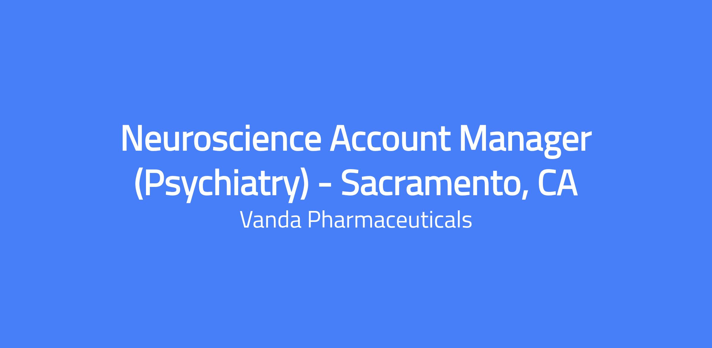 Neuroscience Account Manager (Psychiatry) in Sacramento, CA. This role is responsible for exceeding sales goals by delivering real value to customers through differentiated products and services, reporting to the Neuroscience District Sales Manager.