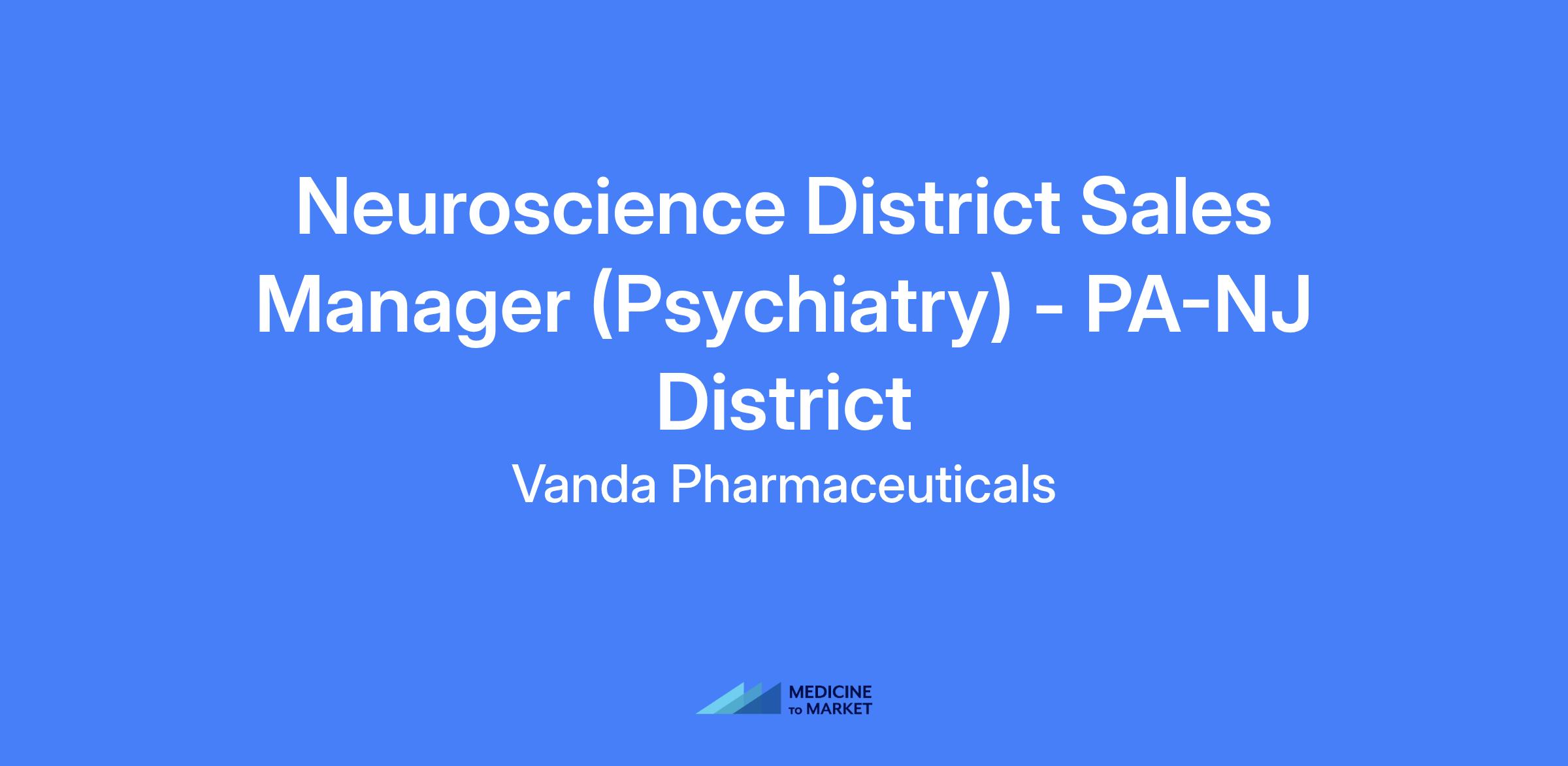Neuroscience District Sales Manager (Psychiatry) for the PA-NJ District.