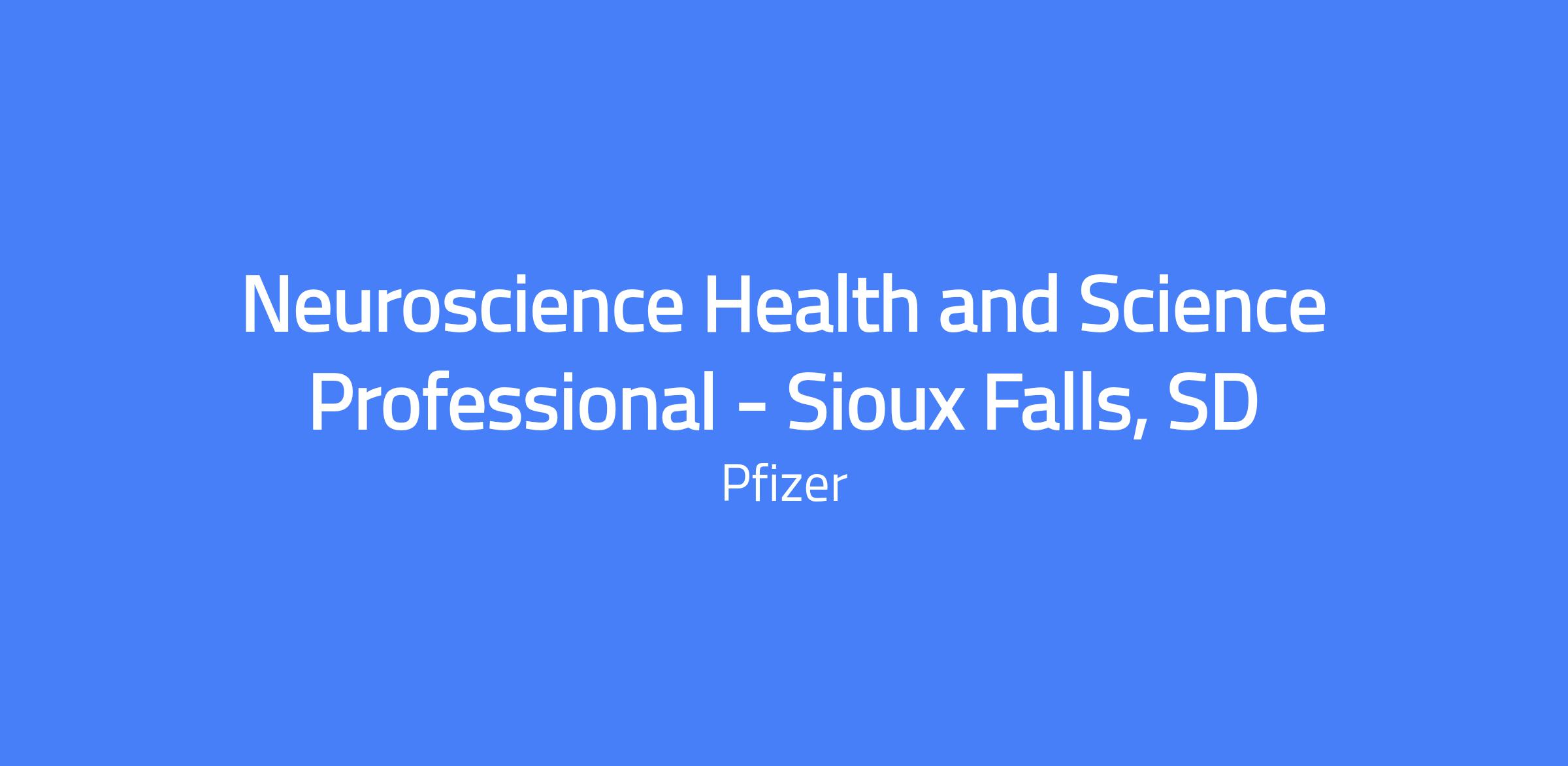 The Neuroscience Health & Science Professional (HSP) is responsible for increasing territory sales and relationship development with assigned customers and accounts by engaging in product promotion and determining the best strategies to manage their business. The HSP should possess customer, market, and business acumen, analytical skills, and strong product and disease state knowledge; demonstrate ability to drive sales, promotional and strategic business development and management skills, and in-depth customer engagement expertise both in-person and virtually; demonstrate outstanding communication and teamwork skills; be adept in the operation of digital and virtual tools; and be effective at working remotely in collaboration with cross-functional internal teams to address customer needs and compliantly deliver on Pfizer business objectives. Location: Sioux Falls, SD.