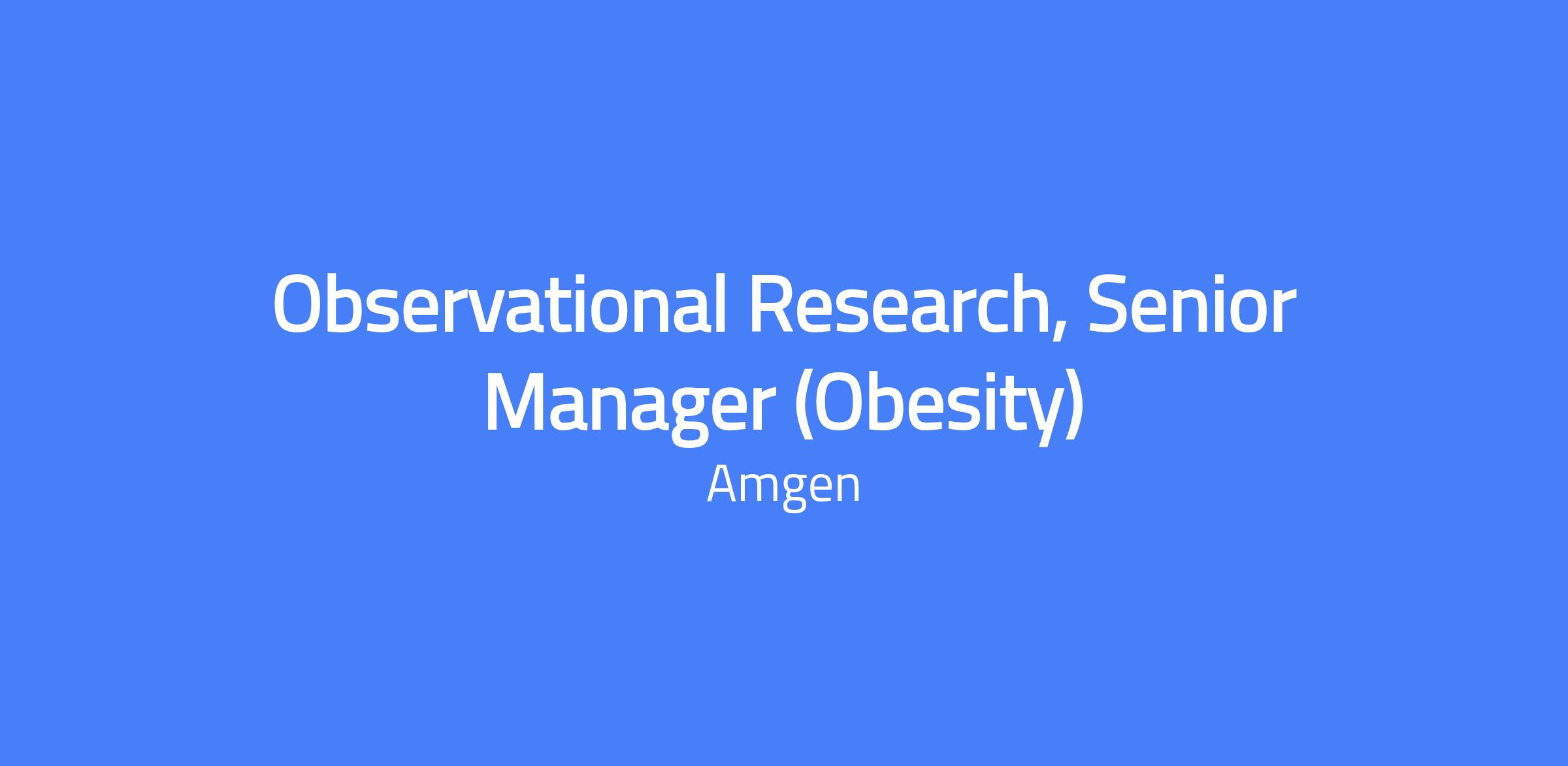 Your role as an Observational Research Senior Manager will be to lead projects and teams in support of Amgen’s mission to serve patients. You will gather insights and build collaborations to advance the generation, use, and dissemination of real-world evidence (RWE). This position supports the obesity therapeutic area and requires you to be an effective communicator, critical thinker, and adept scientist. In a rapidly evolving disease landscape, your ability to execute on the science and deliver results efficiently will be essential.