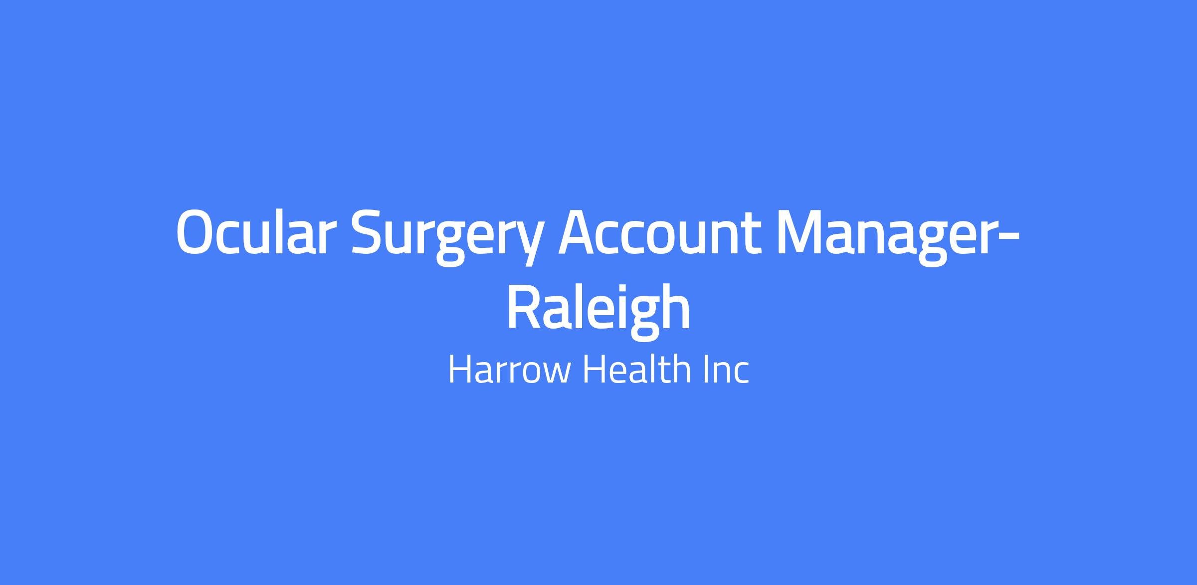 Ocular Surgery Account Manager-Raleigh