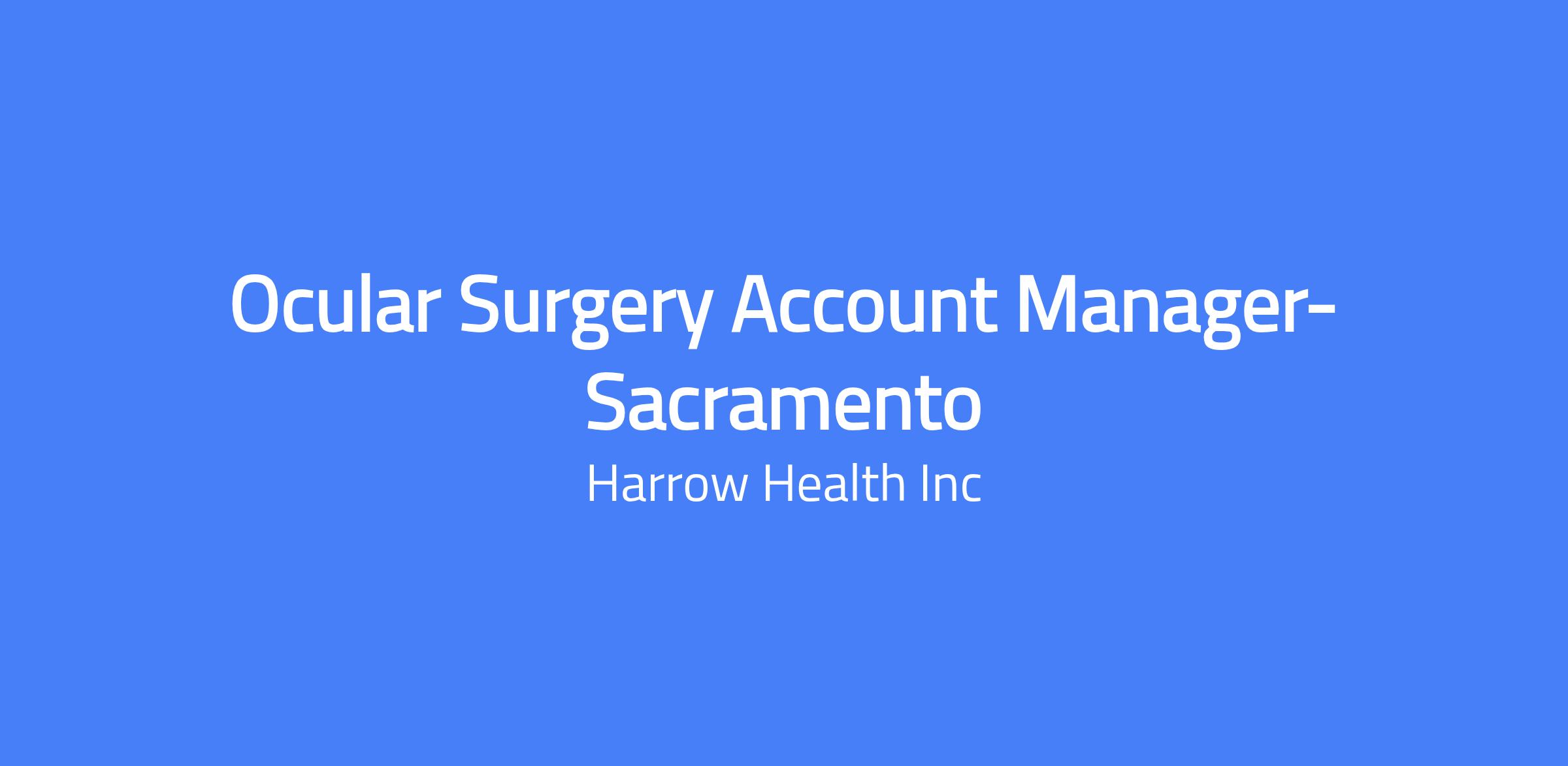The Ocular Surgery Account Manager (OSAM) is responsible for growing business with Harrow-approved products with a strong focus on expanding sales in a defined geographic region, reporting to the National Sales Director, Ocular Surgery. This position requires a highly motivated self-starter with strong business acumen who offers solutions to challenges, has a positive presence with internal and external customers, is well organized, and can multitask in a continuously changing and dynamic ophthalmic surgery (or surgical) environment. Assigned monthly/quarterly/annual sales revenue and product objectives are achieved through consultation and value-based communications with ophthalmologists, surgery centers, and staff on the use, characteristics, and advantages of Harrow peri-operative products. Prospective candidates should have a proven track record of success in managing peri-operative therapies, managing relationships between a physician’s office and their ASC, buy-and-bill sales, and working in a highly collaborative matrix environment. Â
