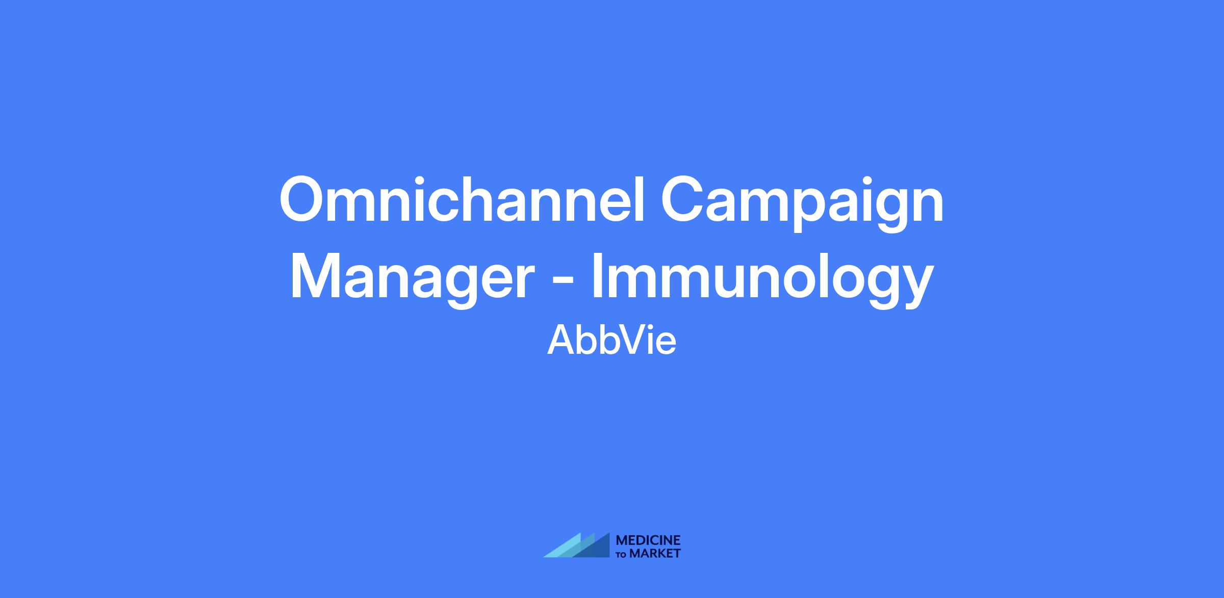 The Omnichannel Campaign Manager - Immunology will lead and drive projects and activities to meet business objectives for US Commercial. Collaborate with internal and external cross functional partners in driving implementation for new and existing projects.