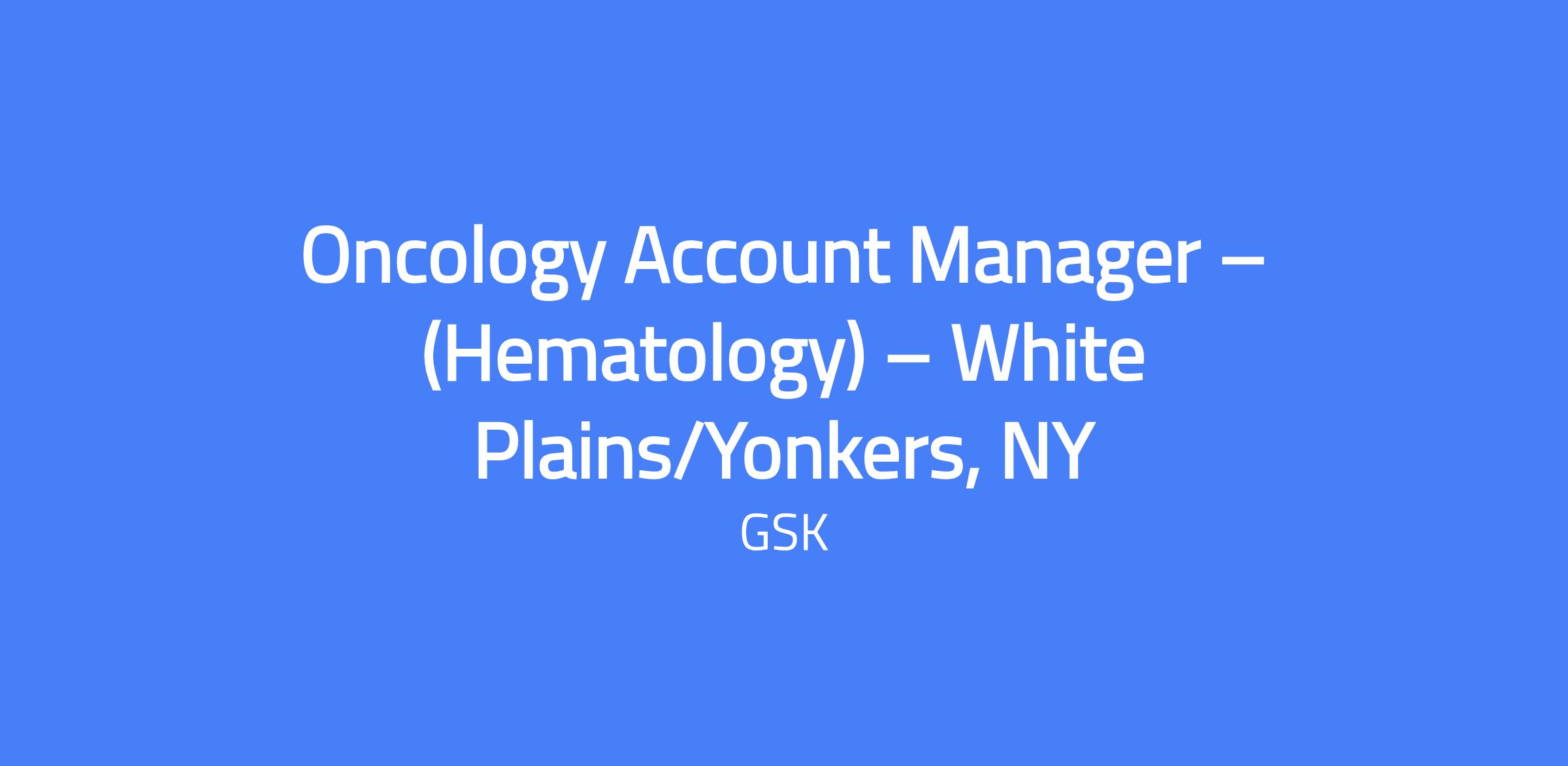 Oncology Account Manager β (Hematology) β White Plains/Yonkers, NY