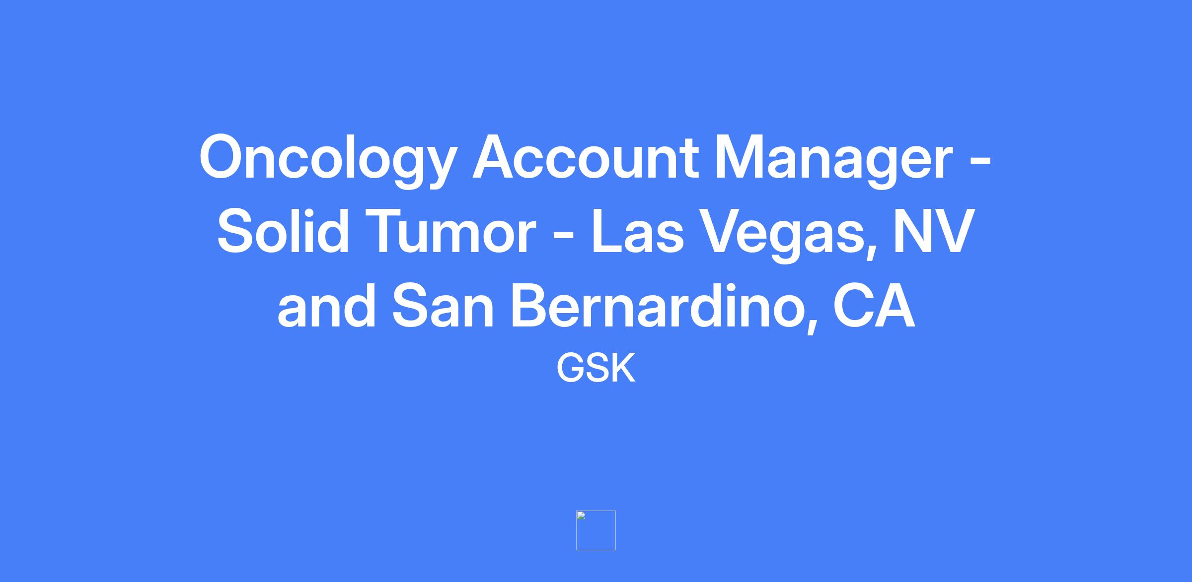 Oncology Account Manager - Solid Tumor responsible for managing sales and business activities within a defined geographic area (Las Vegas, NV and San Bernardino, CA). Drive area sales results, build and execute business plans, and leverage cross-functional teams to promote GSK therapies and grow key accounts. Works with Marketing, Medical Affairs, Market Access, and Commercial Operations to maximize brand availability and access for patients in the territory.