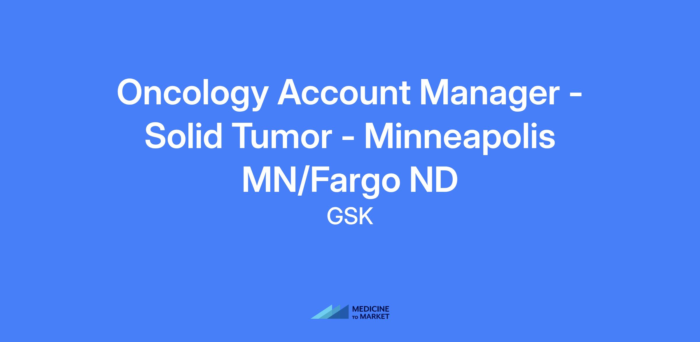 Oncology Account Manager - Solid Tumor - Minneapolis MN/Fargo ND. Manage sales and business activities within a defined geographical area (Minnesota and Fargo, ND). Drive area sales results, develop business plans, and engage cross-functional teams to promote GSK therapies and increase patient access.