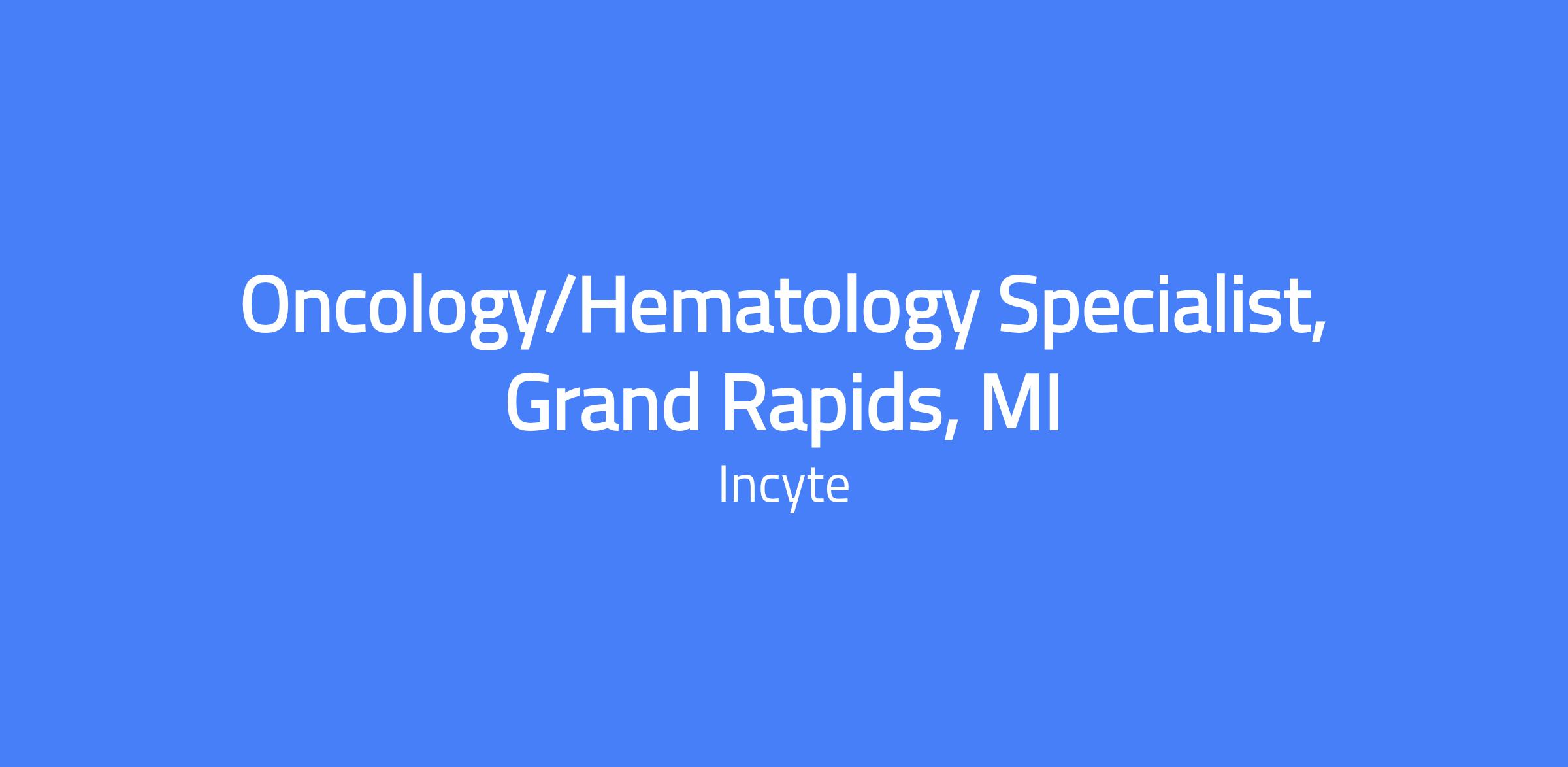 Oncology/Hematology Specialist, Grand Rapids, MI. The role serves as the primary customer contact for demand creation by executing the marketing strategy, educating customers and promoting products. The specialist works collaboratively with internal and external counterparts to support the lymphoma franchise.