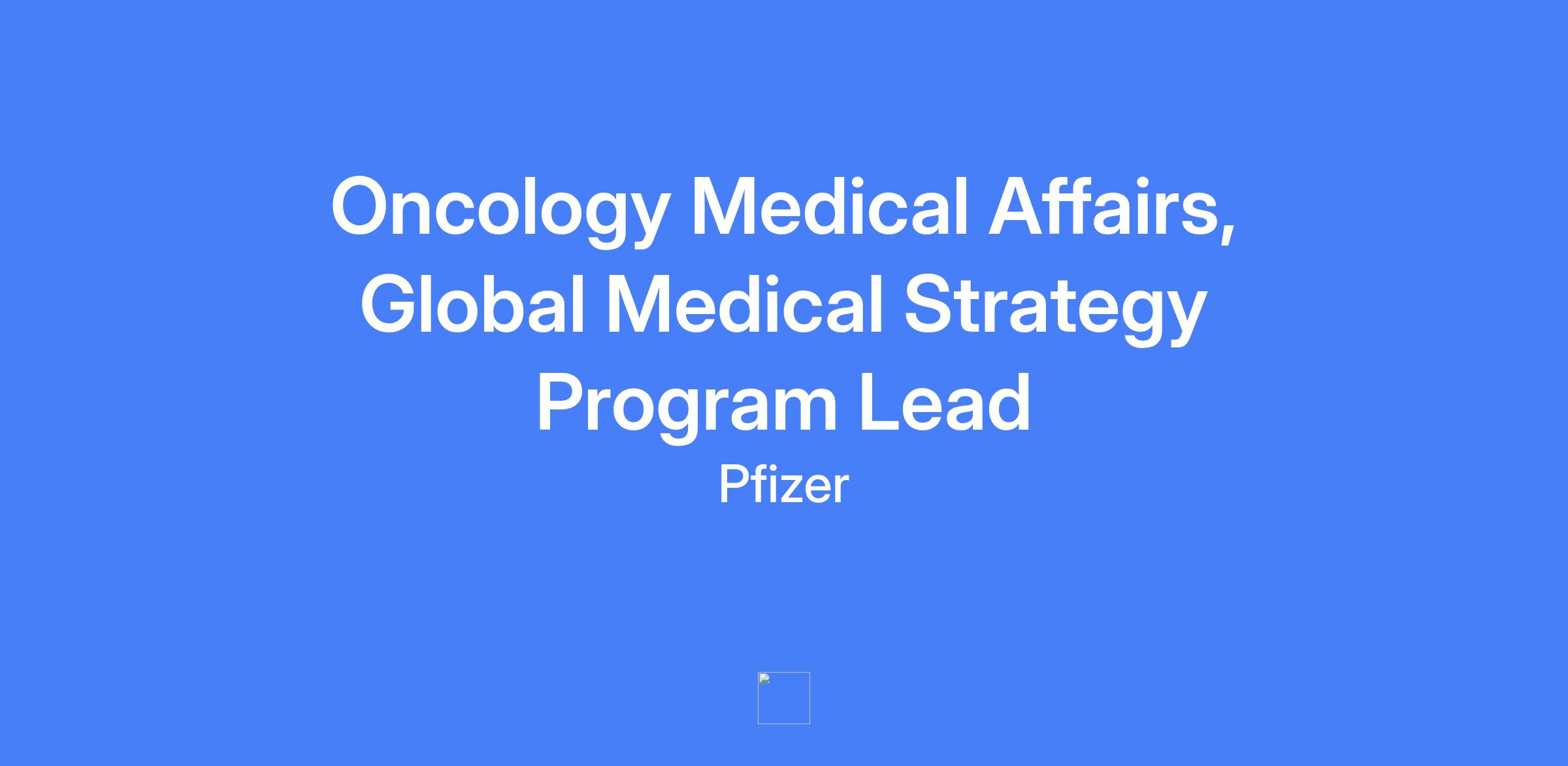 Oncology Medical Affairs, Global Medical Strategy Program Lead