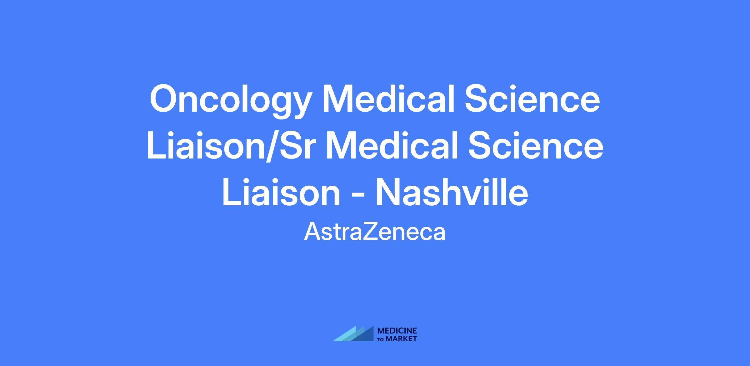 Oncology Medical Science Liaison/Sr Medical Science Liaison in Nashville. The role acts as the local medical voice in oncology, developing a tailored medical strategy to improve patient care and outcomes within the territory, and providing medical and scientific support for AstraZeneca's oncology products, new indications, and development compounds.