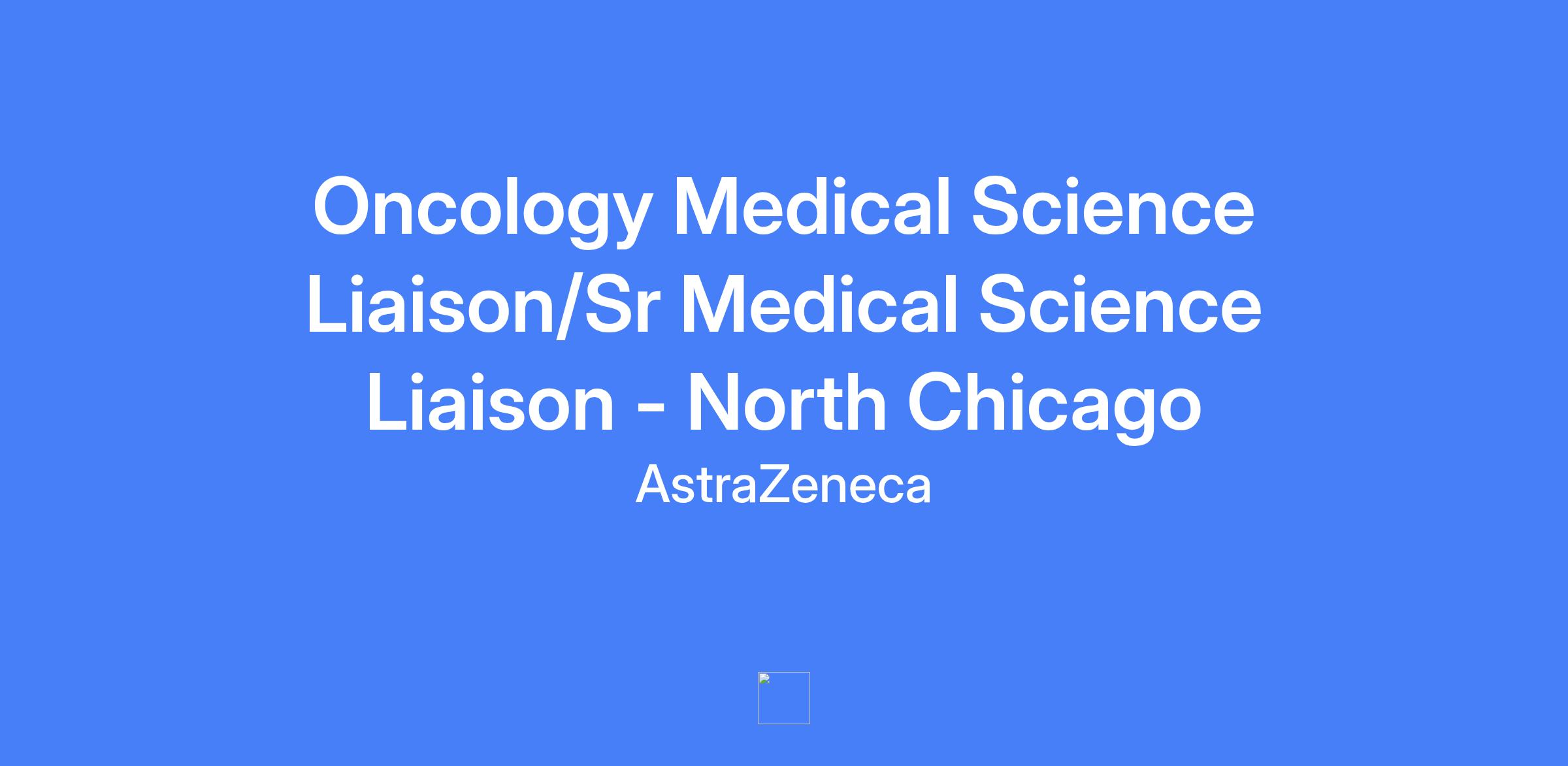 Oncology Medical Science Liaison/Sr Medical Science Liaison - North Chicago. Serve as the local medical voice in the disease area, building a local medical strategy to improve patient care and outcomes. Provide medical and scientific support for AstraZeneca's oncology products, new indications, and compounds in development. Territory includes Northern Illinois, Iowa, and Wisconsin.