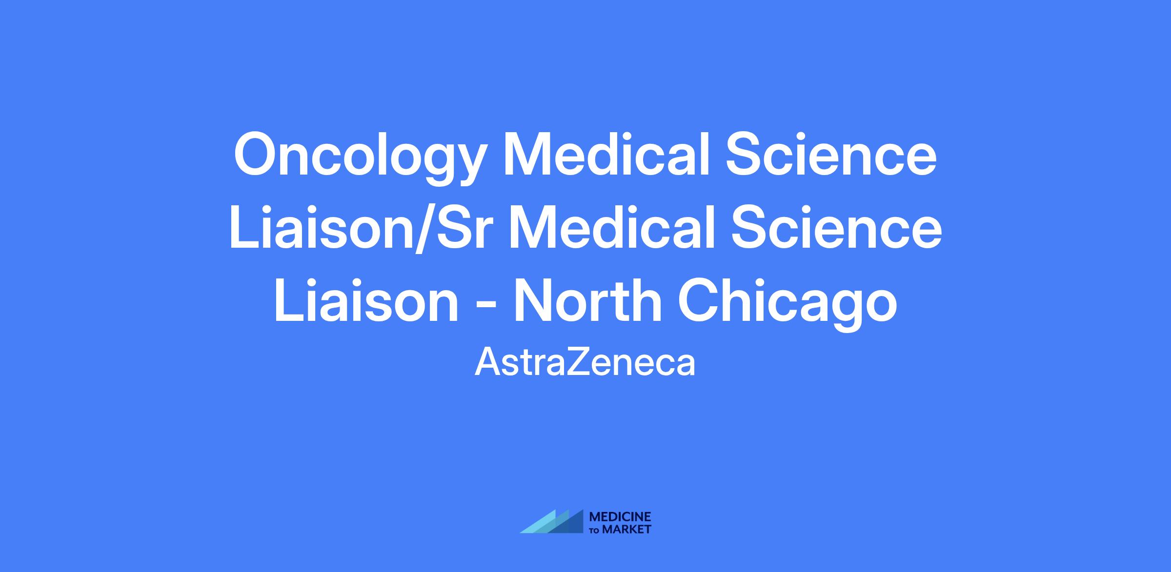 Oncology Medical Science Liaison/Sr Medical Science Liaison - North Chicago. Serve as the local medical voice in the disease area, building a local medical strategy to improve patient care and outcomes. Provide medical and scientific support for AstraZeneca's oncology products, new indications, and compounds in development. Territory includes Northern Illinois, Iowa, and Wisconsin.
