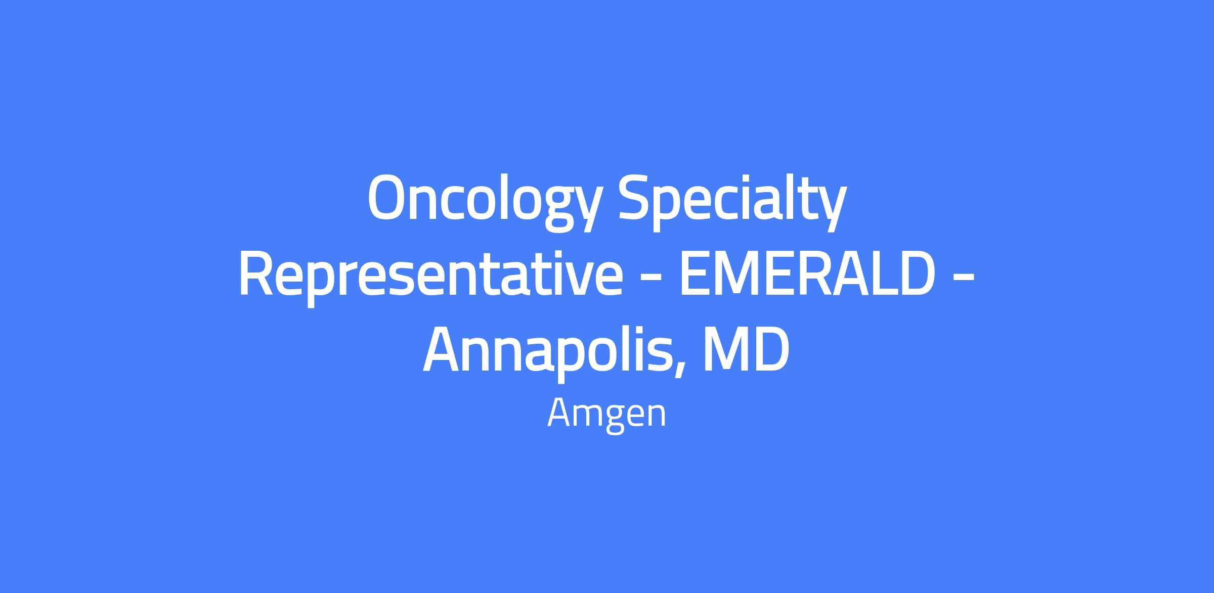 The Senior Oncology Specialist will serve as the primary clinical liaison to medical professionals in the territory that includes Annapolis, Washington, Dover, Rockville, Silver Spring, and Bethesda, MD. You will provide current clinical knowledge of Amgen's oncology products and effectively communicate their clinical and economic benefits. You will create and execute a comprehensive territory plan to achieve sales targets and support product access and patient care. Relocation is not offered for this role.