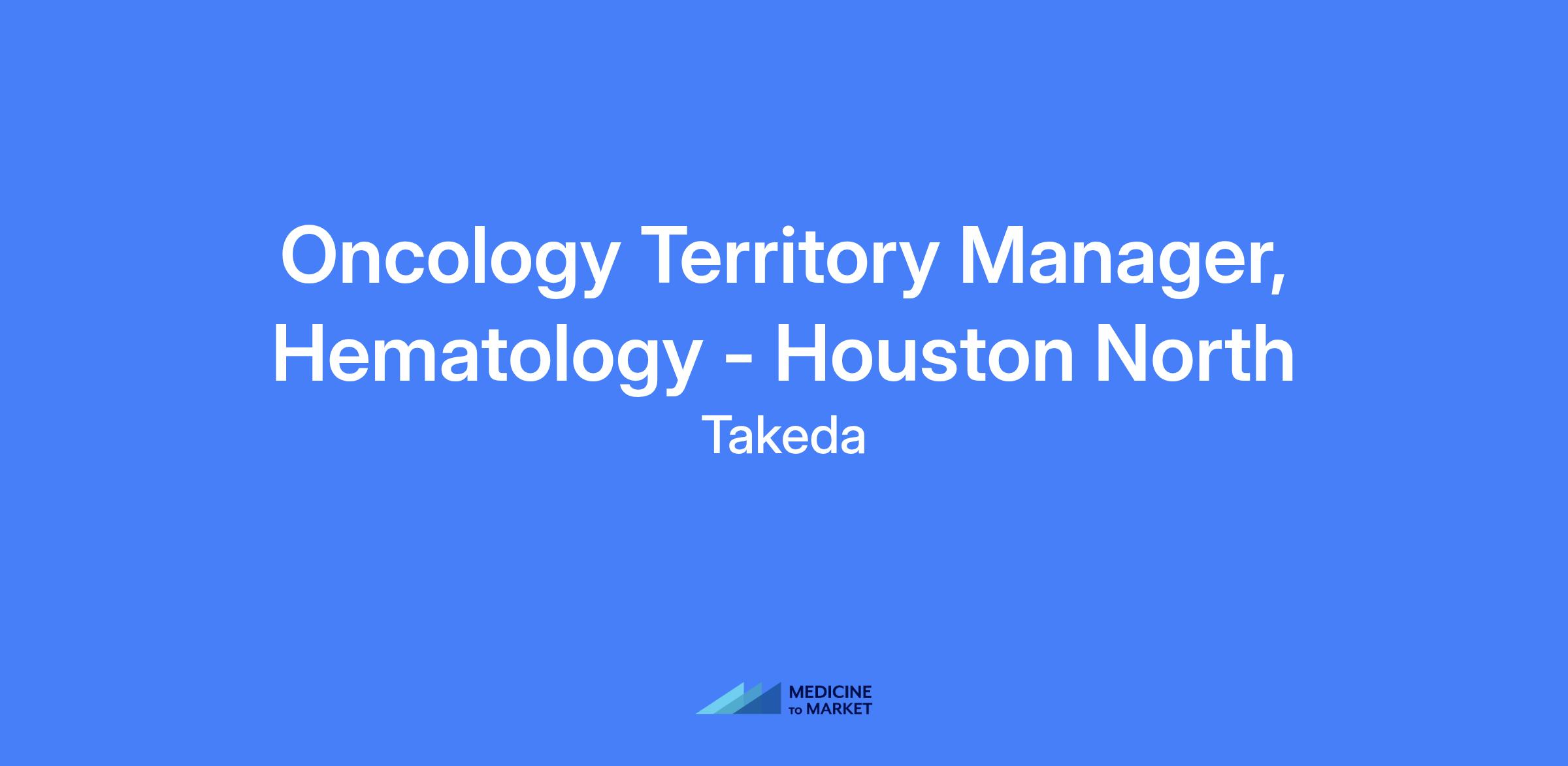 Oncology Territory Manager, Hematology - Houston North. As a member of Takeda Oncology your work will contribute to our bold, inspiring vision to cure cancer. You will be part of the Oncology Sales team, report to the Regional Director, and work with key stakeholders.