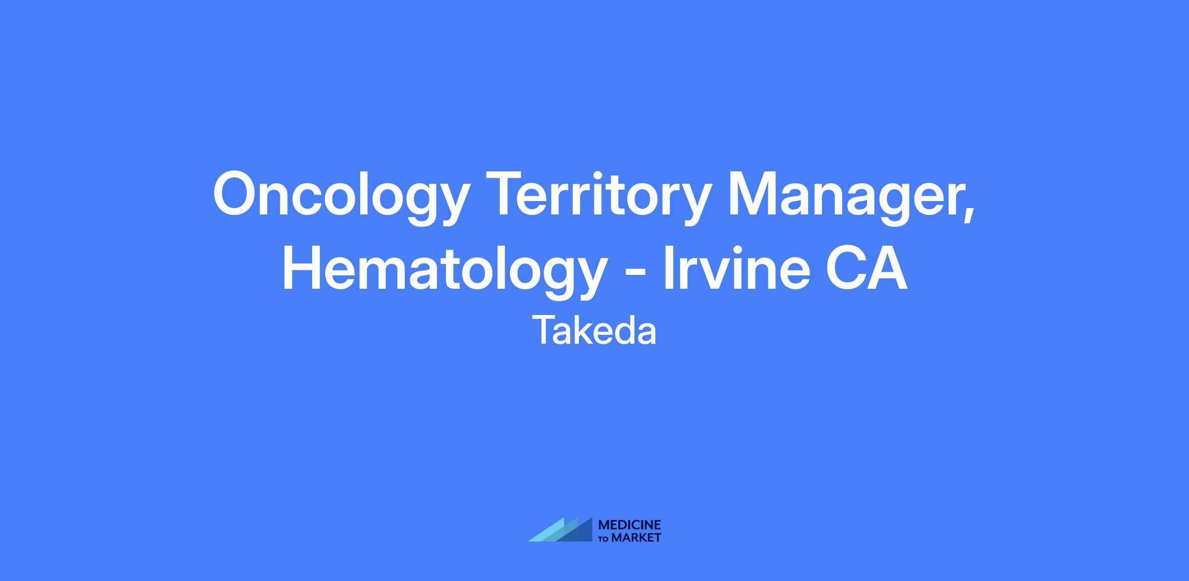 Oncology Territory Manager, Hematology - Irvine CA. Role within Takeda Oncology reporting to the Regional Director, working with key stakeholders to support the Oncology Sales team.
