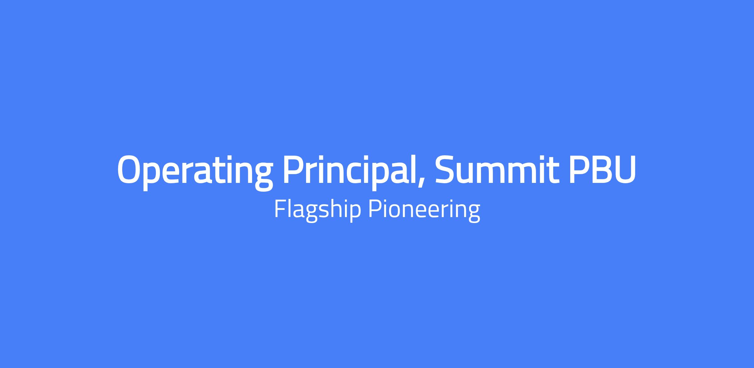 Summit, a Pioneering Business Unit within Flagship, is seeking an Operating Principal to help launch and scale our NewCos. You will work across one or more companies, leading operations and strategy, driving corporate development, and partnering closely with scientific leadership to translate breakthrough ideas into impact.