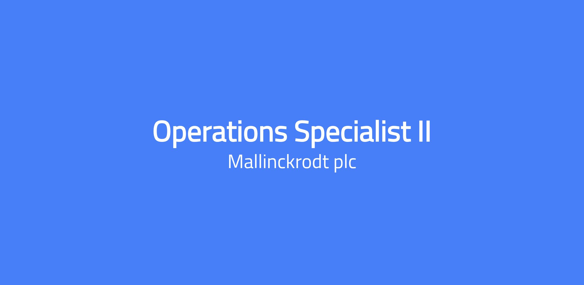 Job Title Operations Specialist II Requisition JR000015721 Operations Specialist II (Open) Location College Park, Dublin - IRL006 Additional Locations Job Description Summary Job Description Summary Shift Operations Specialist The Shift Operations Specialist will be directly involved in the manufacture of our products to the highest standards of safety, potency, efficacy and quality. The role will work within the guidelines of cGMP to ensure conformance with all regulatory requirements and site SOPs, while assisting in the implementation of process improvements and enhancements. Job Description The Shift Operations Specialist will be directly involved in the manufacture of our products to the highest standards of safety, potency, efficacy and quality. The role will work within the guidelines of cGMP to ensure conformance with all regulatory requirements and site SOPs, while assisting in the implementation of process improvements and enhancements. Essential Functions Responsible for execution of all tasks associated with the preparation for and production of Mallinckrodt products in a cGMP environment ensuring full attention to detail and excellent documentation skills. Assist in maintaining a safe, cGxP compliant work environment at all times. Responsible for completion of tasks according to SOPs and Production batch records (PBR’s) Participate on project teams through all phases of the start-up projects; these phases will include Equipment installation and start up, commissioning, validation, and qualification of equipment. Support introduction of new products into sustaining operations through the execution of Product Demonstration and Validation activities Support Engineering, calibration, and utility equipment maintenance activities - Perform initial troubleshooting of issues identified during start-up and routine operations. Drafting and updating of area SOPs, and batch records. Assist with the training of colleagues in SOPs, process execution and equipment operation. Provide support to Quality Operations where required. Drive a culture of Engagement and Continuous Improvement through identifying and implementing opportunities for improvement in process efficiency and compliance. Provide support for initiation and completion of deviations, CAPAs, and change controls for process systems Minimum Requirements Education / Experience / Skills: Working knowledge of production operations with a strong focus on attention to detail and compliance to all regulatory standards. An ability to work independently and as part of a team. The individual in this position will be able to organize their own work on a routine basis and requires minimal supervision. Minimum certificate level qualification in a related discipline (Chemistry, Engineering, Biotechnology etc.) plus 2-3 years relevant experience in a cGMP commercial manufacturing environment. Knowledge of GMP utility systems (i.e., WFI, clean steam, pharmaceutical gas systems) is desirable Experience in working in cross functional teams. This job description indicates the general nature and level of work expected of the incumbent. It is not designed to cover or contain a comprehensive listing of all activities, duties or responsibilities required of the incumbent. Incumbents may be asked to perform other duties as required. Good interpersonal and communication skills, verbal and written. Collaborator with strong levels of engagement with individuals and teams. High level of delivery and work completion. A proven track record of delivering on commitments. A knowledge of Continuous improvement principles and tools. Organizational Relationship/Scope: The Operations Specialist is a key frontline role reporting directly to the Operations Lead at College Park Mallinckrodt Pharmaceuticals Manufacturing facility. At Keenova, we believe that no one should be alone in their pursuit of better health. This purpose drives us as we pair quality therapeutics with human support—showing up in big moments and small to help patients find comfort and confidence. We bring deep expertise and resolve to every therapeutic area we serve, including immunology, urology, men’s health, orthopedics, critical care, and pediatric endocrinology. We work with patients, care partners, and physicians to help them navigate healthcare system complexity and access therapies that make a meaningful difference. We are Keenova—keen to solve, keen to serve. Learn more at www.keenova.com. At Keenova, we know that we contribute to something that matters because we make quality products that impact patient lives. Our dynamic work environment provides unique experiences for employees to grow and develop. Invest in your own career with Keenova and let’s do something dynamic together. Keenova provides equal employment opportunities to applicants and employees without regard to race; color; gender; gender identity; sexual orientation; religions practices and observances; national origin; pregnancy, childbirth, or related medical conditions; protected veteran status; disability; or any other category protected by law. Additional information on Keenova’s hiring practices may be found by clicking