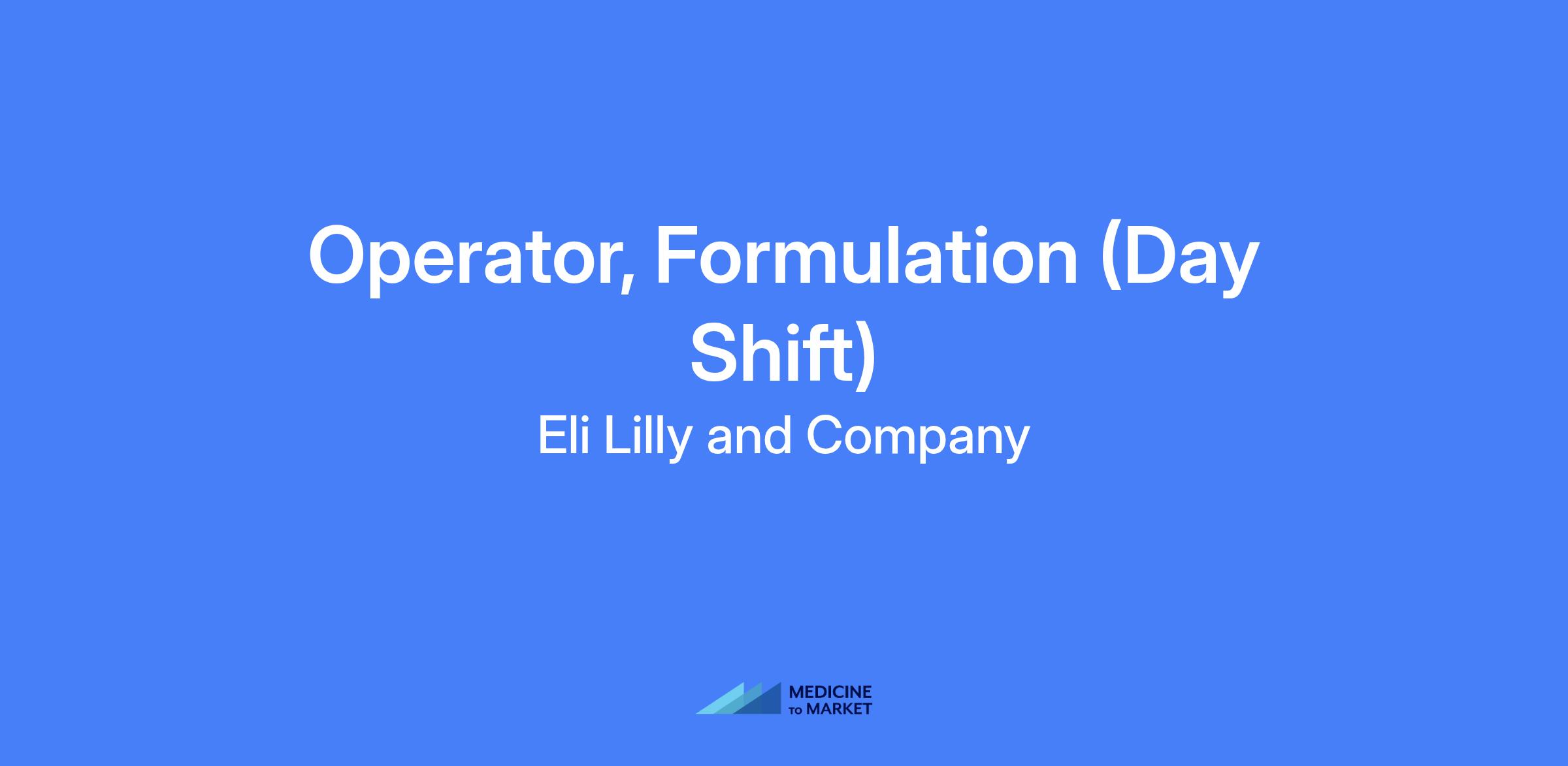 Operator, Formulation (Day Shift) at Lilly. Responsible for supporting start up activities during project phase, including formulation, aseptic isolator barrier filling, and visual inspection; later, ensure continuous supply by running processes, troubleshooting, and collaborating cross-functionally. Opportunities for growth into leadership and technical roles.