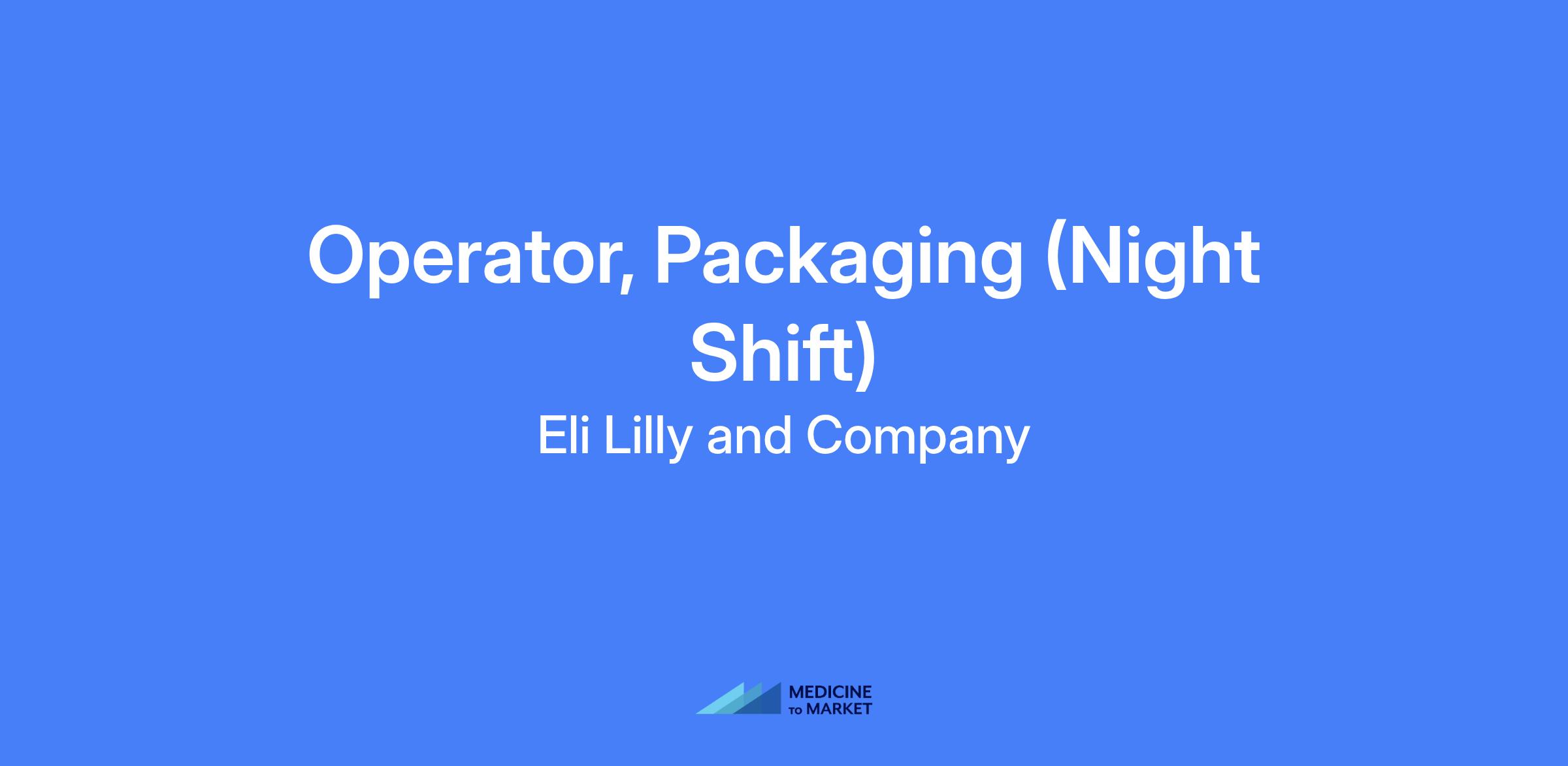 Operator, Packaging (Night Shift) at Lilly. Responsible for leading and performing packaging operations to ensure safe, quality, and timely production of medicines, including supervision during the project phase and ongoing operations after project completion.