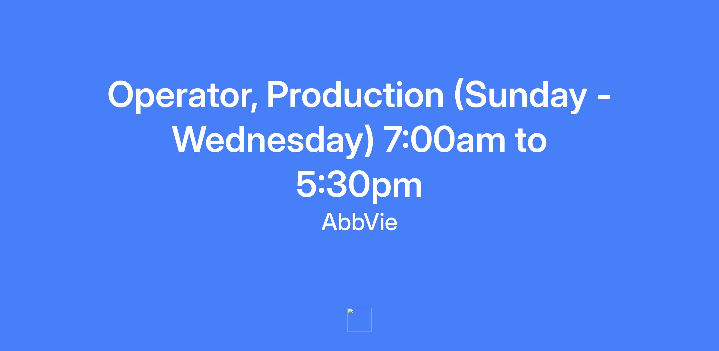 Operator, Production (Sunday - Wednesday) 7:00am to 5:30pm.