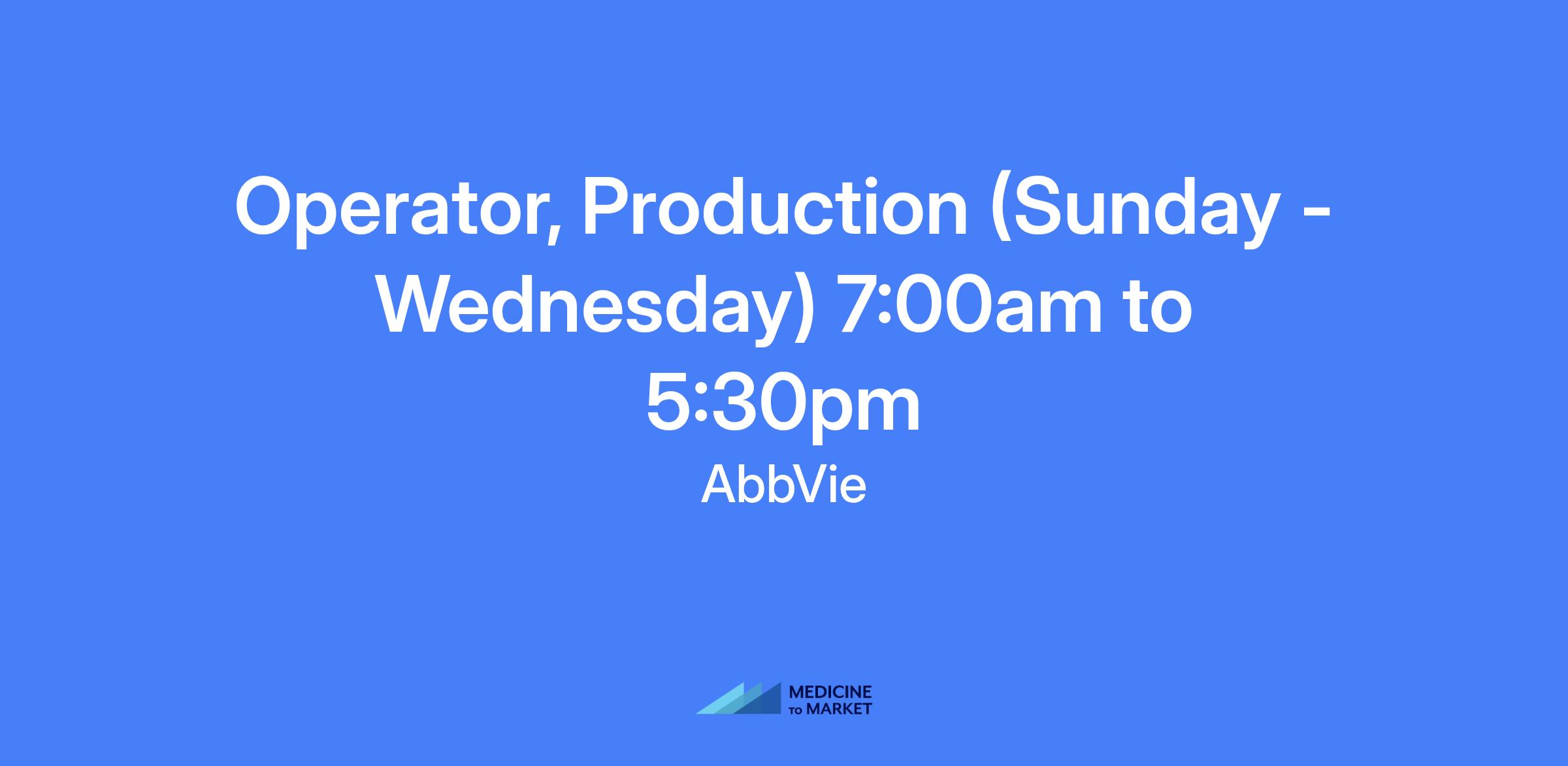 Operator, Production (Sunday - Wednesday) 7:00am to 5:30pm.