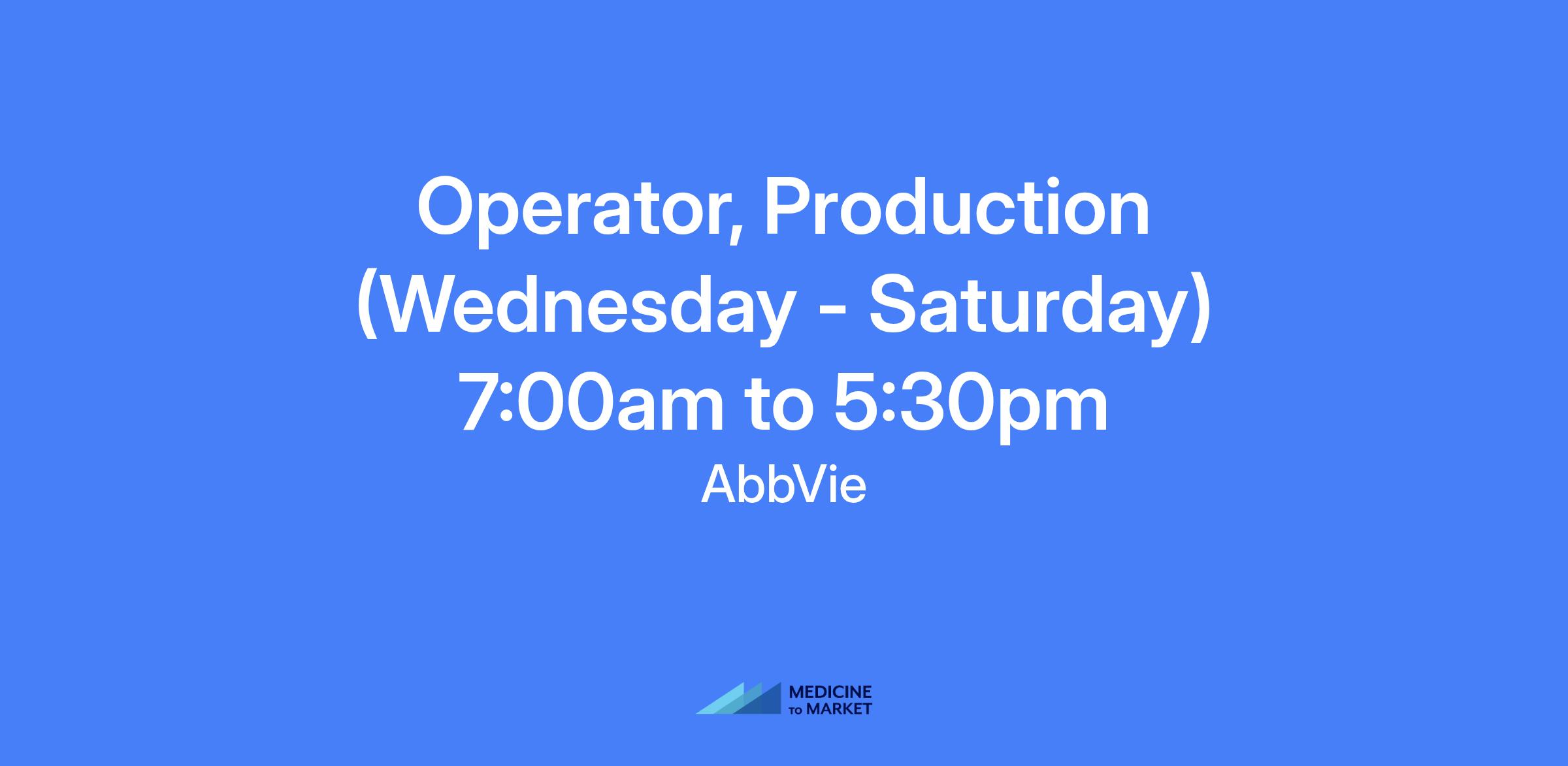 Operator, Production (Wednesday - Saturday, 7:00am to 5:30pm). This role requires four 10-hour shifts. You will set up equipment for routine processes, operate complex manufacturing equipment, monitor processes, and communicate events to the appropriate personnel. You will identify opportunities for improvements and implement changes in operations and documentation, with minimal supervision.