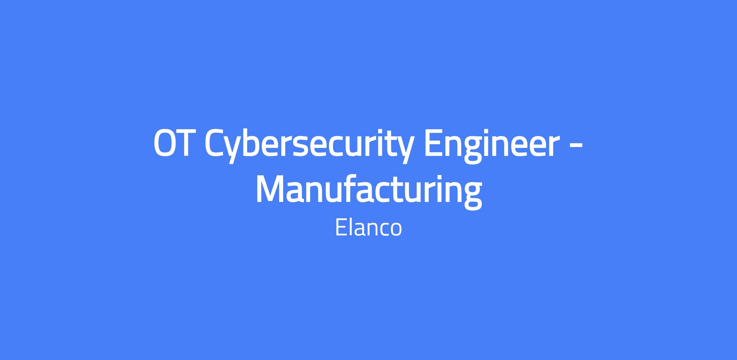 OT Cybersecurity Engineer - Manufacturing at Clinton, IN. You will safeguard Elancoβs manufacturing environment by leading cybersecurity governance, risk management, and incident response for operational technology (OT) systems, driving compliance with global standards, and partnering across engineering, information security, and automation teams to improve reliability and resilience.