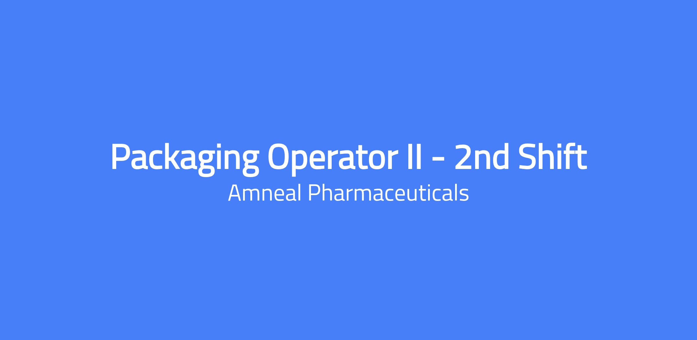 The Packaging Operator II is responsible for safely operating the packaging equipment to package in process products in accordance with the Packaging Order while following SOPs and Maintaining 100% cGMP & compliance during operations. Schedule: 2nd Shift - 3:30pm - 12:00am Monday to Friday.