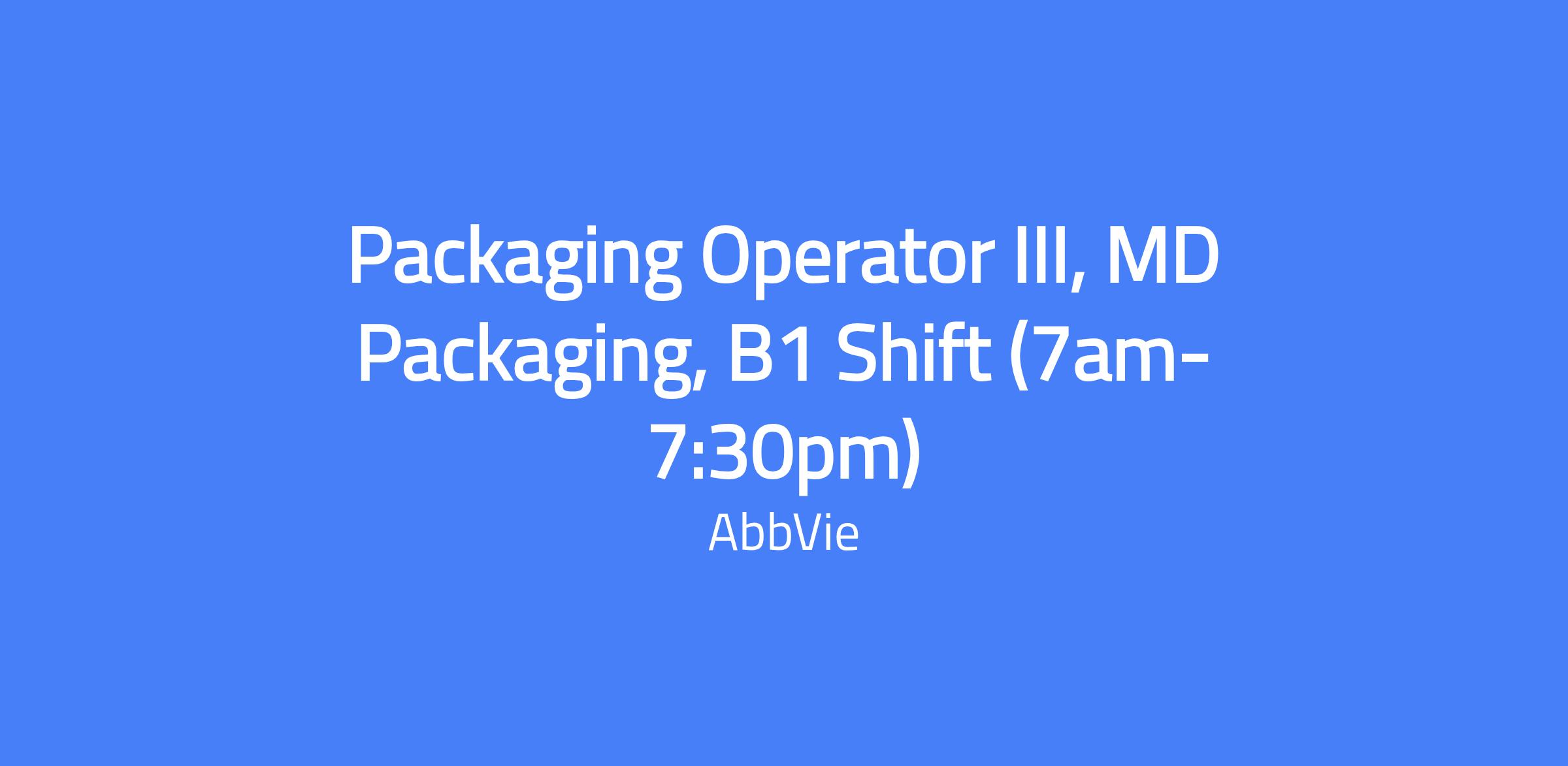 - Adhere to Environmental, Health and Safety procedures and guidelines, and facilitate a proactive safety culture. Use AbbVie approved tools for the job to minimize the introduction of extraneous matter into the packaging process.