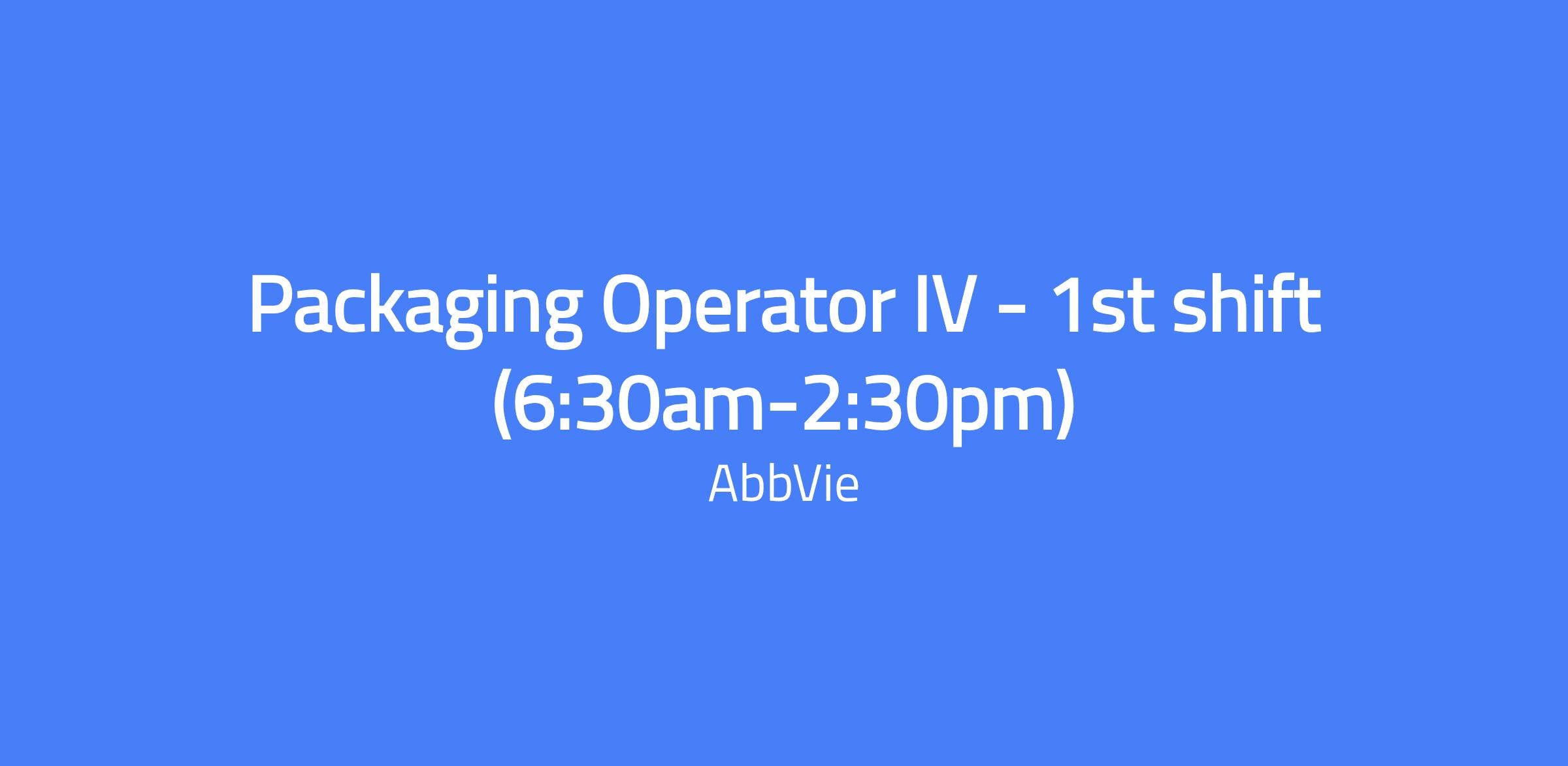 Packaging Operator IV on the 1st shift (6:30am-2:30pm) performs operations of the final manual packaging equipment, product inspections, and handling of packaging material and tablets under minimal supervision. The role also includes cleaning the work area and equipment.