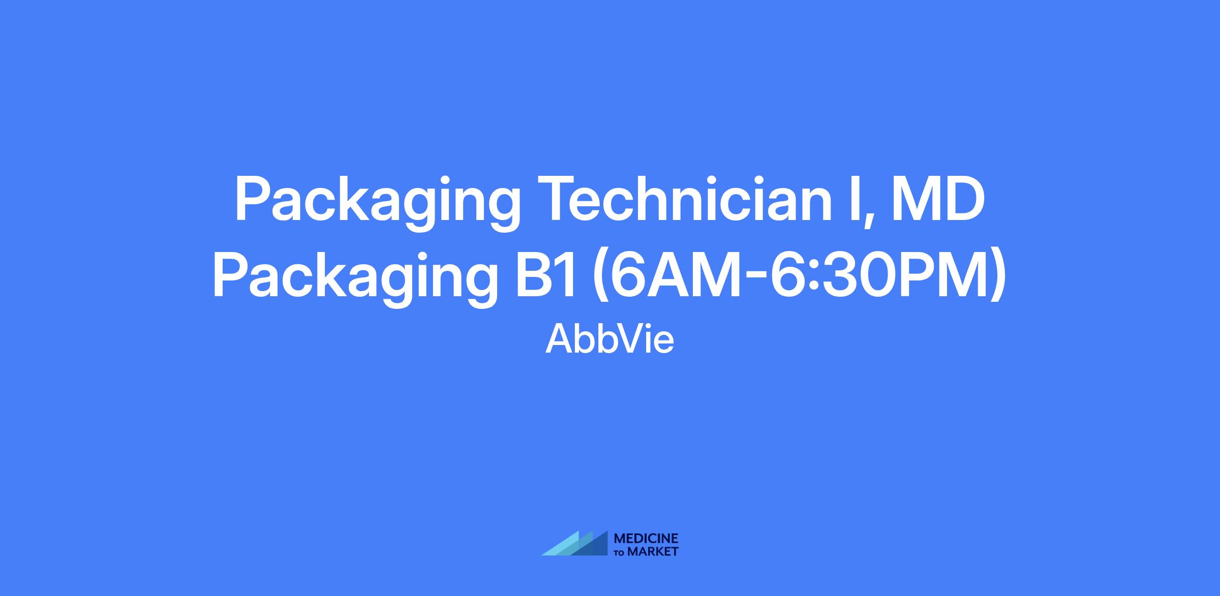 Packaging Technician I, MD Packaging B1 (6AM-6:30PM) — Manage production lines to meet the established production schedule in accordance with SOPs and GMPs while monitoring product to ensure quality standards are maintained. Shift: B1 6AM-6:30PM Thursday/Friday/Saturday and every other Wednesday.