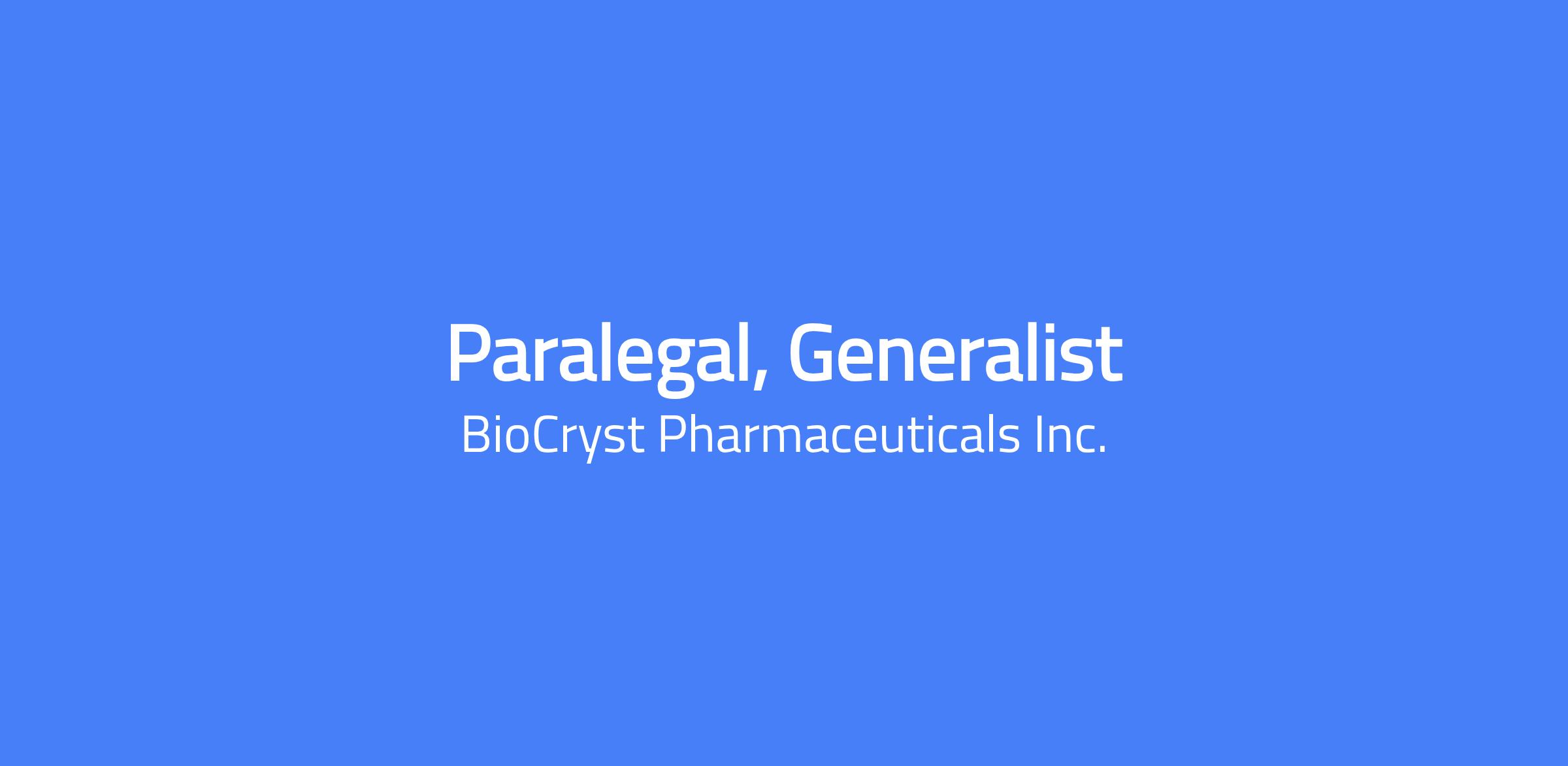 COMPANY: At BioCryst, we share a deep commitment to improving the lives of people living with hereditary angioedema (HAE) and other rare diseases. We leverage our expertise in structure-guided drug design to develop first-in-class or best-in-class oral small-molecule and injectable protein therapeutics, led by the efforts of our team of expert scientists in our Discovery Center of Excellence in Birmingham, Alabama. Our global headquarters is in Durham, North Carolina and our employees span the globe across sites in multiple countries. We are proud of our culture of engagement and accountability that rewards people for innovative thinking and achievement of key objectives. For more information, please visit our website at www.biocryst.com or follow us on LinkedIn and Instagram. JOB SUMMARY The Paralegal, Generalist provides broad-based legal and operational support across the Legal and Compliance function. This role supports contract lifecycle activities, manages discrete legal and compliance-related projects, and serves as a key coordination point between attorneys, business stakeholders, and external partners. The position operates in a highly collaborative and fast-paced, regulated environment. ESSENTIAL DUTIES & RESPONSIBILITIES Contracting & Legal Support Support the end-to-end contract lifecycle, including intake, tracking, drafting support, review coordination, execution, and archival of agreements. Prepare and manage standard form agreements (e.g., NDAs, employment agreements, separation agreements, consulting agreements, vendor agreements, amendments) using approved templates and playbooks. Coordinate contract review and approval workflows between attorneys, business owners, and external parties. Maintain contract records in contract management systems and shared repositories, ensuring accuracy, completeness, and version control. Monitor key contract milestones, renewals, expirations, and obligations; prepare reports and summaries as needed. Assist attorneys with legal research, document review, and preparation of supporting materials, as appropriate. Maintain deadlines, generate status reports, and ensure timely completion of tasks. Ability to provide supplemental support and manage calendars for C Suite attorney when necessary. Project Management & Operational Support Manage and track legal and compliance-related projects, including timelines, deliverables, dependencies, and status reporting. Coordinate cross-functional stakeholders to ensure projects move forward efficiently and deadlines are met. Develop and maintain project plans, trackers, dashboards, and meeting materials. Support process improvement initiatives related to contracting, legal operations, and compliance workflows. Assist with implementation and ongoing use of legal systems and tools (e.g., contract lifecycle management platforms, intake tools). Assist with the creation of Purchase Orders and spend tracking for Legal vendors. Compliance & Administrative Support Support compliance and governance activities by maintaining documentation, logs, and audit-ready records. Assist with tracking training, certifications, disclosures, and other compliance-related requirements, as directed. Prepare reports, summaries, and presentations for Legal and Compliance leadership. Handle confidential and sensitive information with discretion and professionalism. EXPERIENCE & QUALIFICATIONS Required: Bachelor’s degree or paralegal certificate from an accredited program. 3+ years of experience in a paralegal, legal operations, contracts, or related role. Experience supporting contracts and managing multiple projects simultaneously. Strong organizational, project management, and prioritization skills. Excellent written and verbal communication skills. High level of attention to detail and accuracy. Proficiency with Microsoft 365 (Word, Excel, PowerPoint, Outlook, Teams, SharePoint). Able to thrive in a fast-paced, dynamic environment with a high degree of professionalism and confidentiality. Preferred: Experience in the pharmaceutical, biotechnology, healthcare, or other regulated industry. Familiarity with employment-related agreements and human resource matters. Familiarity with contract lifecycle management tools and legal intake workflows. Exposure to compliance, governance, or audit support activities. The statements in this position description are intended to describe the general nature and level of work being performed by people assigned to this classification. They are not intended to be construed as an exhaustive list of responsibilities, duties, and skills required of personnel so classified. The manager may assign additional responsibilities and assignments from time to time. BioCryst is an equal opportunity employer and is committed to providing equal employment opportunities without regard to age, race, religion, sex, sexual orientation, gender identity, national origin, Veterans status, disability and/or other protected class characteristics. Additionally, BioCryst is committed to achieving its business objectives in compliance with all federal, state and local law. Equal Opportunity Employer/Protected Veterans/Individuals with Disabilities This employer is required to notify all applicants of their rights pursuant to federal employment laws. For further information, please review the Know Your Rights notice from the Department of Labor. Passionate. Smart. Motivated. We’re all these qualities—but most importantly, we’re committed to making a difference in the lives of those living with hereditary angioedema (HAE) and other rare diseases. If you’re someone who turns challenges into triumphs and aims to achieve beyond what you think is possible, we’re waiting for you. Culture is the fabric that binds us together and makes our company a special place to work. We are powered by our people, and every employee can provide valuable input on how we can achieve our goals through a culture of accountability. Our b